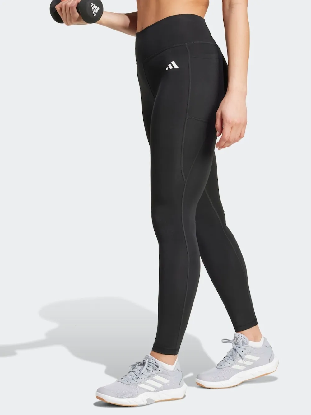 adidas Black Optime Essentials Stash Pocket Full Length Leggings Clearance
