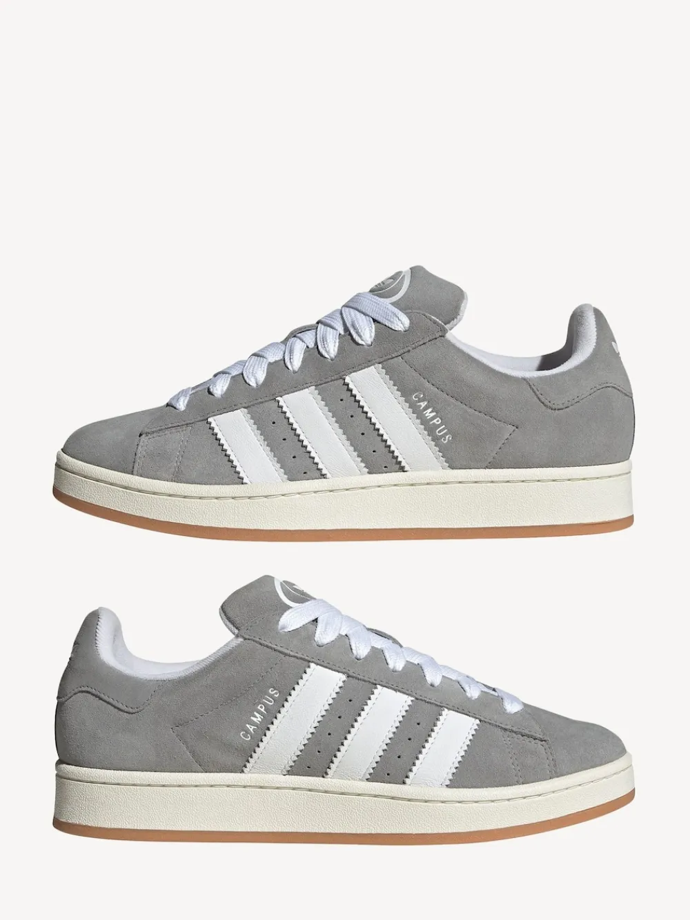 Although they made their debut on the hardwood, the adidas Campus shoes in grey were quickly adopted just about everywhere else. With this pair, we move the iconic silhouette in another direction and add modern materials, colours and proportions. They’re done with a premium leather upper lined with soft textile terry fabric, with all of it riding on an off-white midsole — a clear connection to the Campus legacy. Upper – Leather, Lining and Sock – Textile, Sole – Other Materials.