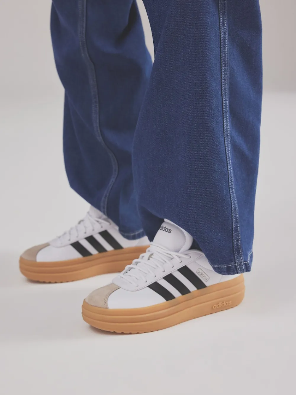 Give your wardrobe an instant refresh with these adidas platform white and black sneakers. The eye-catching silhouette, adorned with the iconic 3-Stripes, makes a stylish statement without sacrificing comfort. The soft lining and EVA sockliner combine to keep your foot gently cushioned as you go about your day. Upper – 100% Leather, Lining. and Sock – 100% Textile. Sole – 100% Rubber.