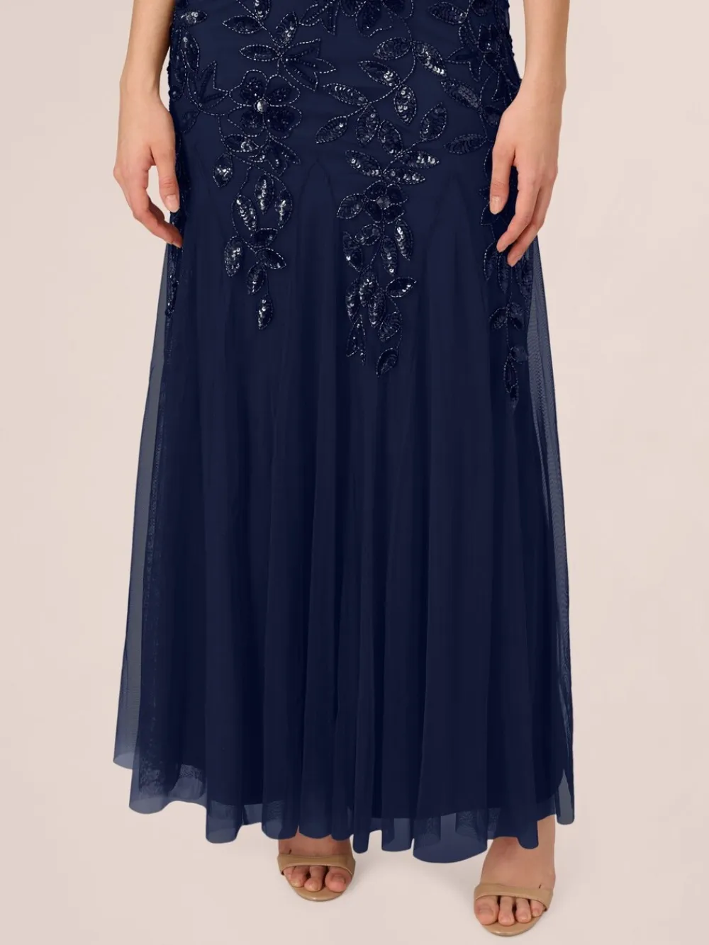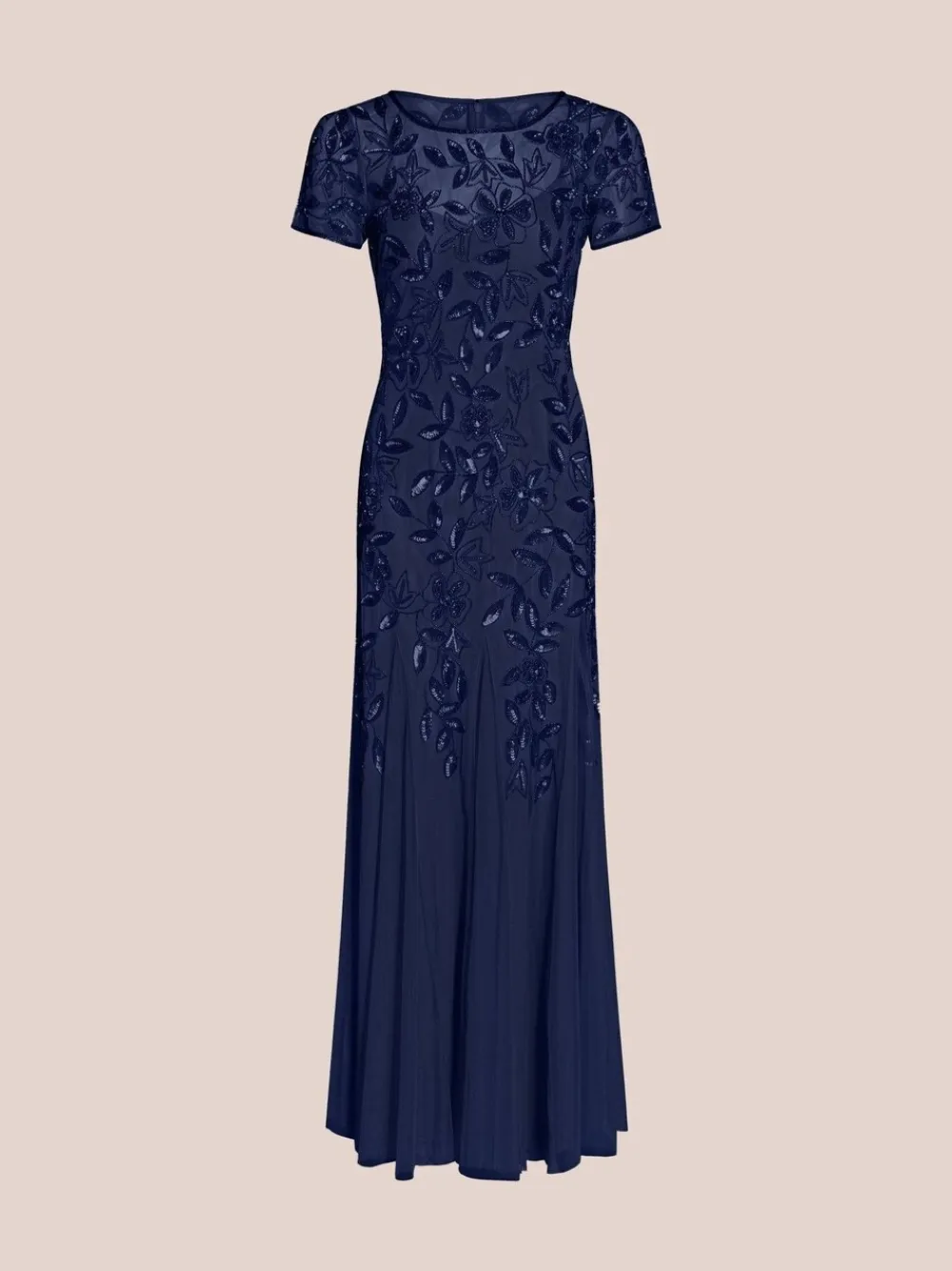 Adrianna Papell Bead Long Dress With Godets Dark Blue Hot