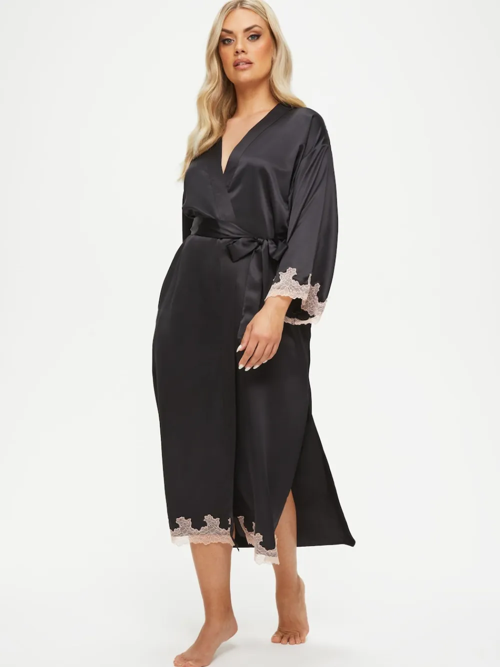 Looking just as good as you feel never felt so easy in the Sorella Maxi Robe. This gorgeous piece features delicate lace detailing to the hem and cuffs.Complete with a tie waist, hidden pockets and maxi length with a sexy thigh split. Pair with the Sorella Chemise for a perfect post-date look¦ Belle wears a size Small. Machine washable. 100% Polyester. Warning: Keep away from fire and flames.