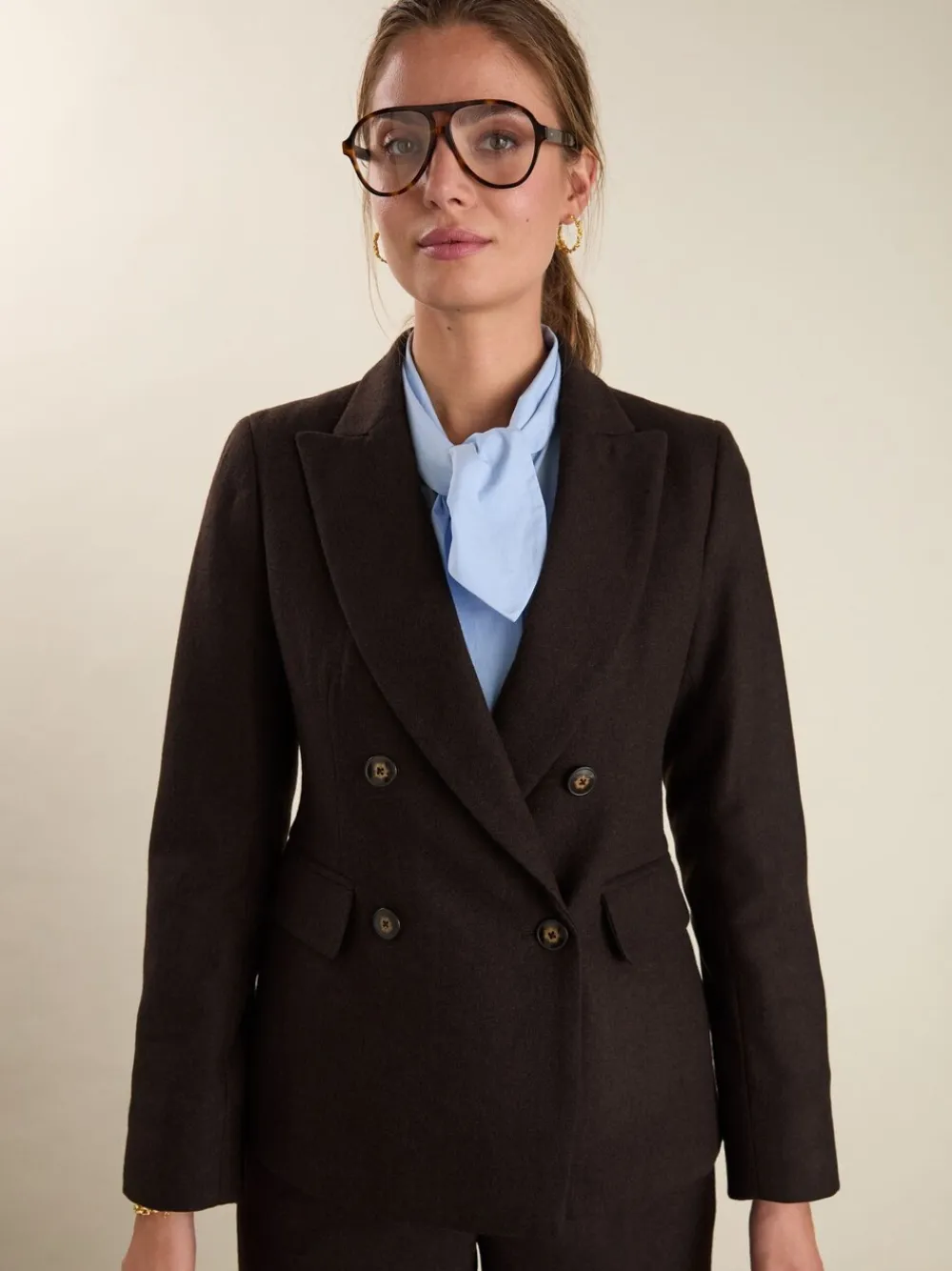 Who knew that a brown jacket could be so brilliant?! The Cissy Blazer is the kind of beautifully cut piece that makes you look instantly put together. Double-breasted, it boasts a nipped-in waist to create an elegant hourglass shape. It looks chic with a simple tee and straight-leg jeans for a date night but can also be styled as a suit: choose from the co-ordinating Gilma Crop Trousers or the Easton Wide Leg Trousers. Made in Europe, Crafted in a wool blend. Fully lined. Rear vent. Cuffs with three buttons. Regular centre back neck to hem 26.5″ / 67cm. Dry clean only. 65% Wool, 30% Polyester, 5% Other fibres.