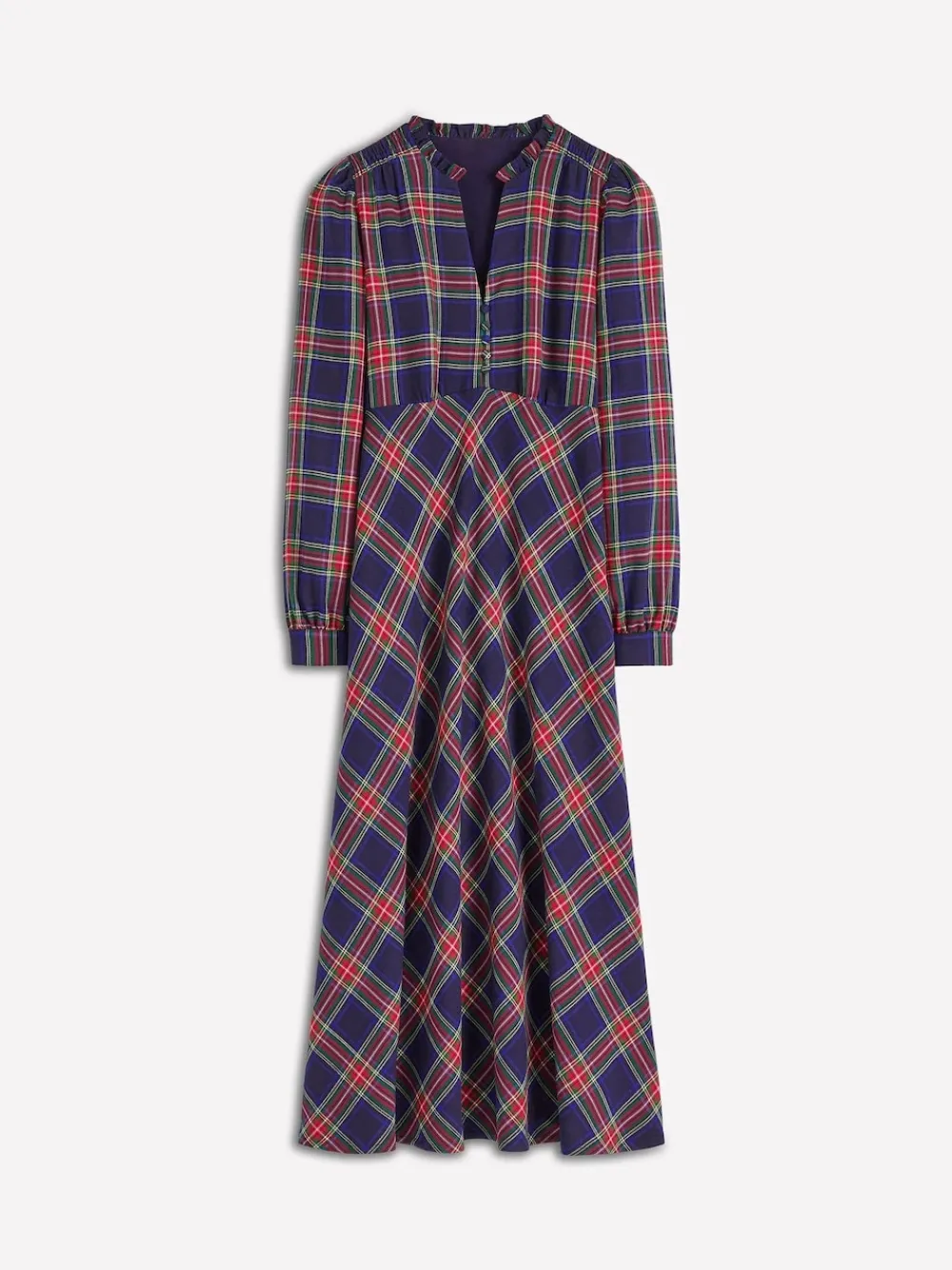 With smocking, delicate ruffles and ease of movement, this tartan print dress is a breath of fresh autumnal air in your wardrobe. It will steal the spotlight no matter your plans. Machine washable. Main 64% Polyester, 34% Viscose, 2% Elastane. Lining 100% Viscose.
