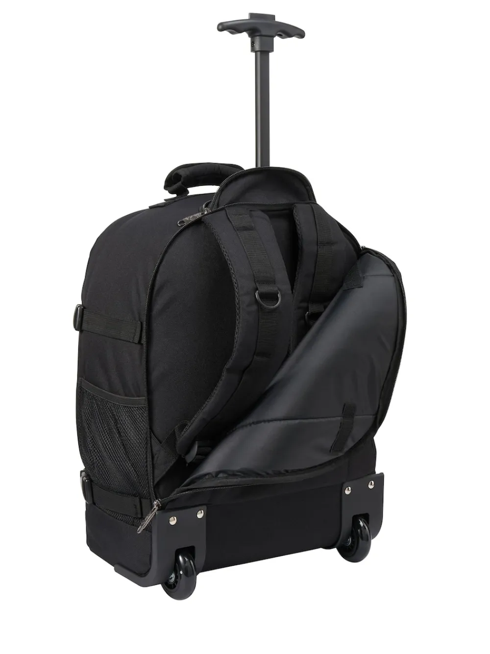 Flies free on Easyjet. The perfect size (45x36x20cm) for EasyJet’s new ‘free’ underseat cabin luggage rules. Hand luggage compatible with ALL other major airlines. Use as a trolley or a backpack thanks to useful hybrid design. Pack more than you think into spacious 30 Litre interior Suitcase-style opening and flexible soft-sided design allow ultimate packing freedom Lightweight design weighs just 1.6kg Comfortable and easy to wear with extensive comfort padding Front Organiser Pocket with compartments for an iPad, travel documents, pens and tickets Quick access pocket on front of bag Padded top carry handle Height 45cm Width 36cm Depth 20cm 100% Polyester.
