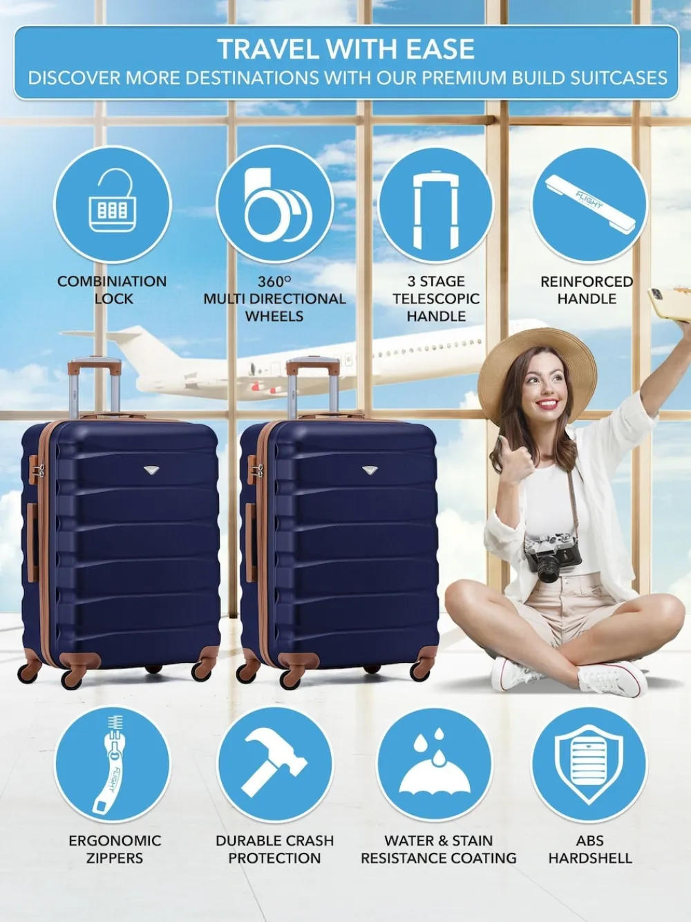 Be the first to review “CABIN PRO Flight Knight Medium Blue Check In Hold Luggage Hardcase Travel Suitcases Set Of 2 Discount” Cancel reply
