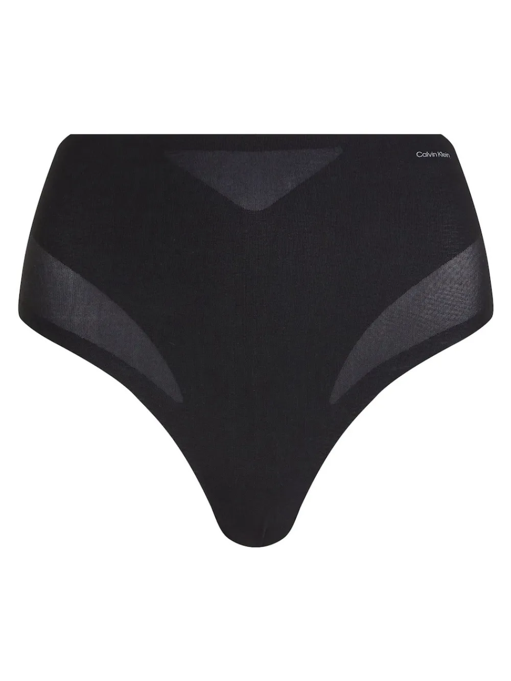 An ode to the body. Calvin Klein Shapewear celebrates your natural curves with innovative support and soft, sensual comfort for every day.STAY PUT MESH delivers moderate compression in breathable mesh that stays in place.• microfibre and mesh• high waisted thong silhouette• targeted tummy control• sculpting mesh panels at waist and hip• no-show laser cut edges• Calvin Klein logo print at the waist Machine washable. 56% Nylon, 44% Elastane.