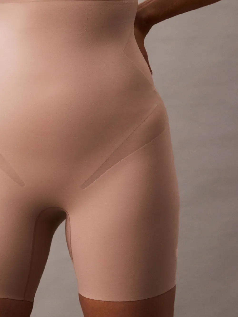 An ode to the body. Calvin Klein Shapewear celebrates your natural curves with innovative support and soft, sensual comfort for every day. Stay Put stretch is the Firm compression level of shapewear within our Foundational Shapewear range. Offering firm compression in curve-enhancing designs that stay in place, with zoned no slip compression, made to disappear. Soft yet powerful raw cut microfibre with tummy control shaping panels on all shapes. STAY PUT STRETCH offers firm compression in curve-enhancing designs that stay in place. 4-way stretch blend, targeted waist and tummy control, sculpting panels at hip and rear, zoned no slip compression, no-show laser cut edges, Calvin Klein logo at the waist. Machine washable. 55% Elastane, 45% Nylon.