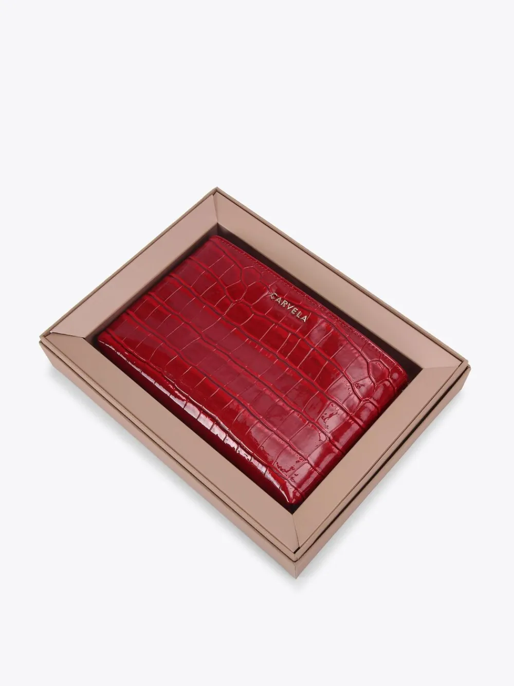 The Chain Pouch Set comprises of a red croc embossed pouch Cross-Body bag presented in a chic presentation box. 13cm (H), 20cm (L), 3cm (D). Strap length: 91cm. Can fit phones up to 6inches. 100% Other fibres.