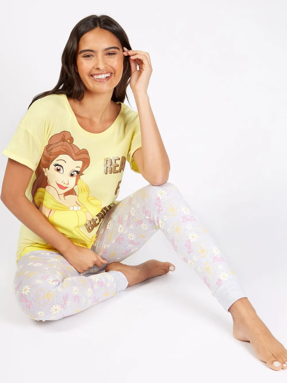 It’s a tale as old as time – these yellow Beauty and the Beast pyjamas belong in every princess’s armoire! Showcasing a large print of Belle on the pyjama’s top with the words Ready for some beauty sleep in a glittery gold font, and a pattern of flowers, the enchanted rose and Belle’s name on the light grey pyjama bottoms. These pyjamas are perfect for curling up with a book or settling down for your beauty sleep! Machine washable. 95% Cotton, 5% Elastane. Warning: Keep away from fire and flames.