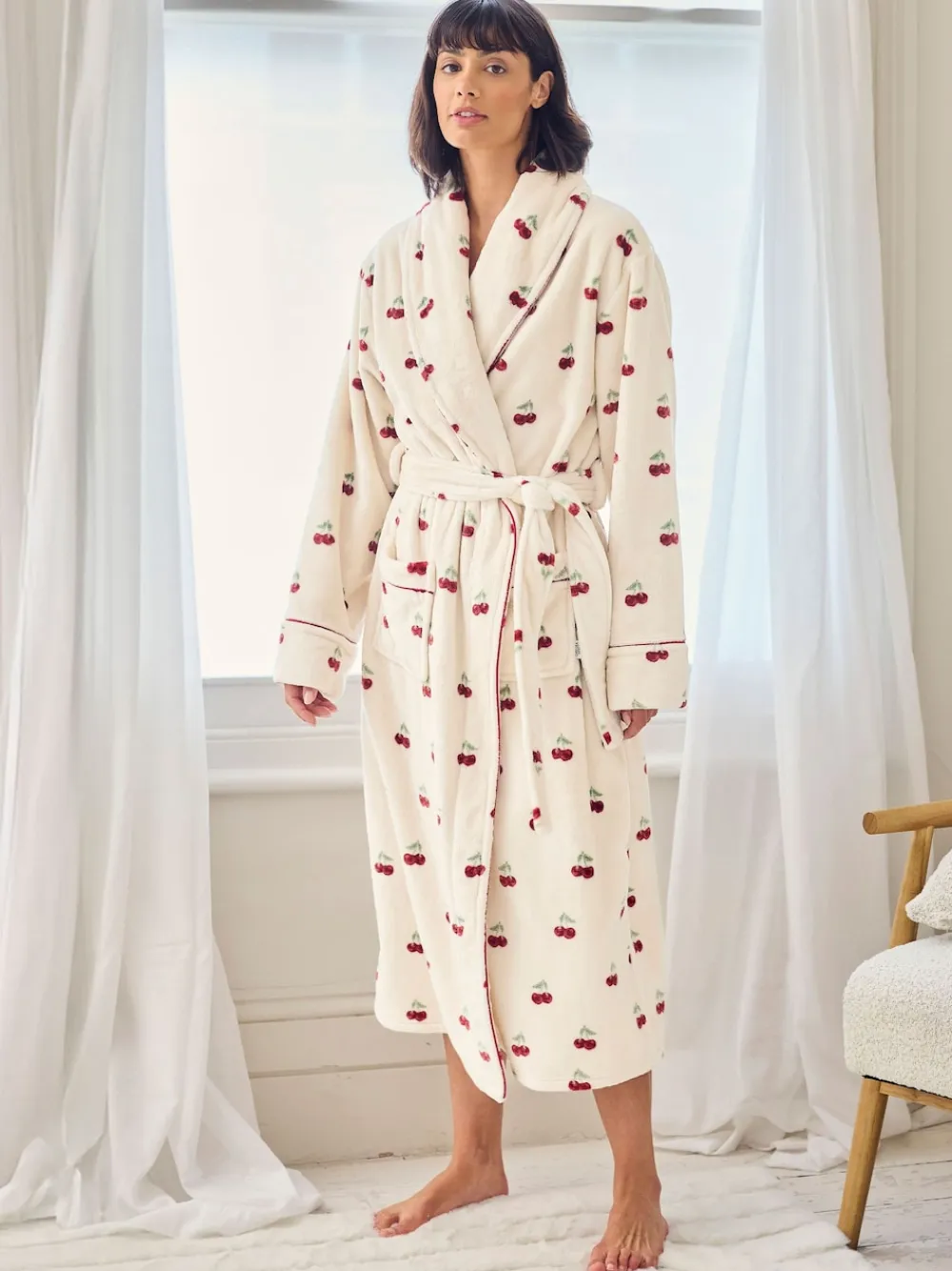 Chelsea Peers Natural Fleece Cherry Print Long Dressing Gown Best
