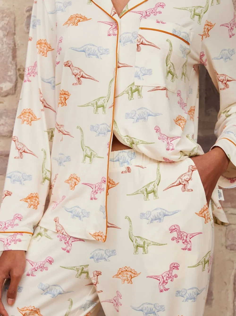 Chelsea Peers White Trouser Pyjamas Dinosaur Print Long Pyjama Set Online