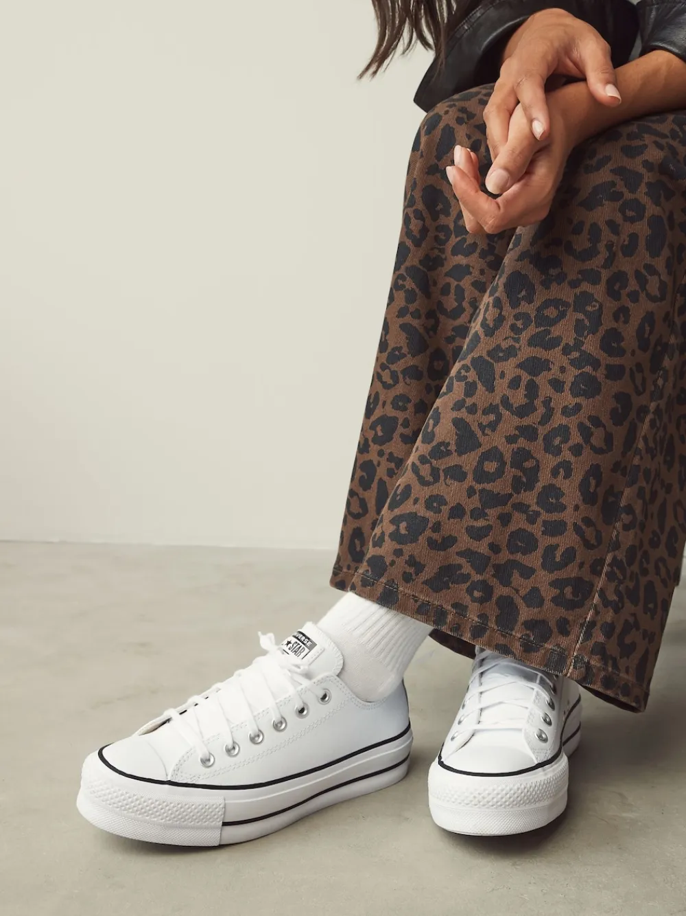 UP HIGH. A premium, leather upper elevates the iconic, low-top look, while a double-stacked sole takes it higher. With classic touches, like a woven ‘All Star’ tongue label, plus a license plate on the heel. EVA cushioning keeps it comfortable. Get lifted. Featuring leather upper, elevated platform sole for added height and lace-up style for an adjustable fit. Upper – Textile, Lining and Sock – Textile, Sole – Other Materials.