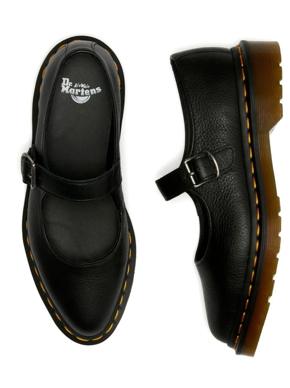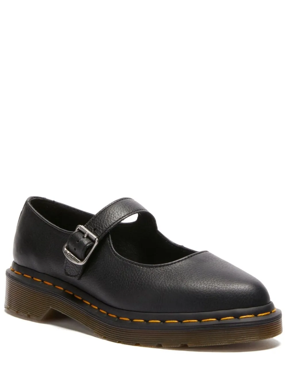 Get to the point. The Elphie Mary Jane shoes is our twist on a classic. Less dainty. More Doc’s. A pointed ballet flat shoes made from soft Virginia leather. Fastened with a single strap with a DM’s branded buckle. The tapered sole is marked with DM’s signature grooving pattern and secured with yellow welt stitching. Main – 100% Leather. Lining – 60% Leather, 40% Textile. Sock – 100% PVC.