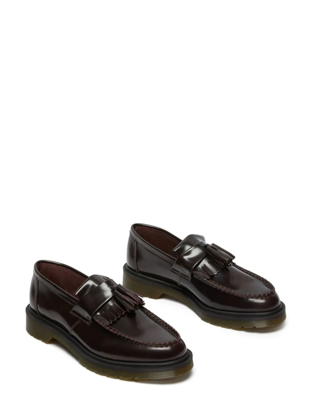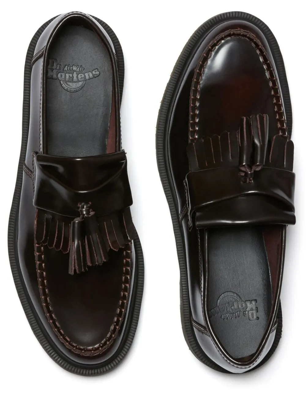 Redefine tradition in our rebellious tassel loafers. Crafted from Burgundy Arcadia leather, these classic loafers fuse polished style with signature Docs edge. Over time the smooth leather is rubbed away to reveal an undertone of contrasting rebellion. The classic Docs air-cushioned sole provides essential comfort and slip resistance so you can freely express yourself. This sole and smooth leather upper is heat-sealed and sewn together, not merely glued, for superior durability. Main – 100% Leather. Lining – 100% Leather. Sole – 100% PVC.
