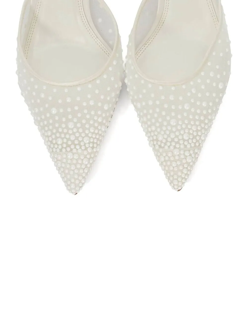 Our Cuddling kitten heel mules exude understated glamour. A timeless style for the modern bride these sleek mules have been crafted from a sheer mesh adorned with hand-laced sea pearls. Combining comfort and opulence The Wedding Collection has been expertly crafted with a memory foam sock lining to take you seamlessly from ceremony to first dance and beyond. For your something blue an elegant blue jewel has been discreetly placed on the sole. Heel height 3cm. Upper – Other Materials, Lining and Sock – Other Materials, Sole – Other Materials.