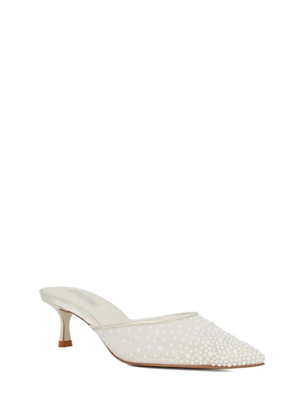 Dune London White Cuddling Bridal Mesh Kitten Mule Heels Discount