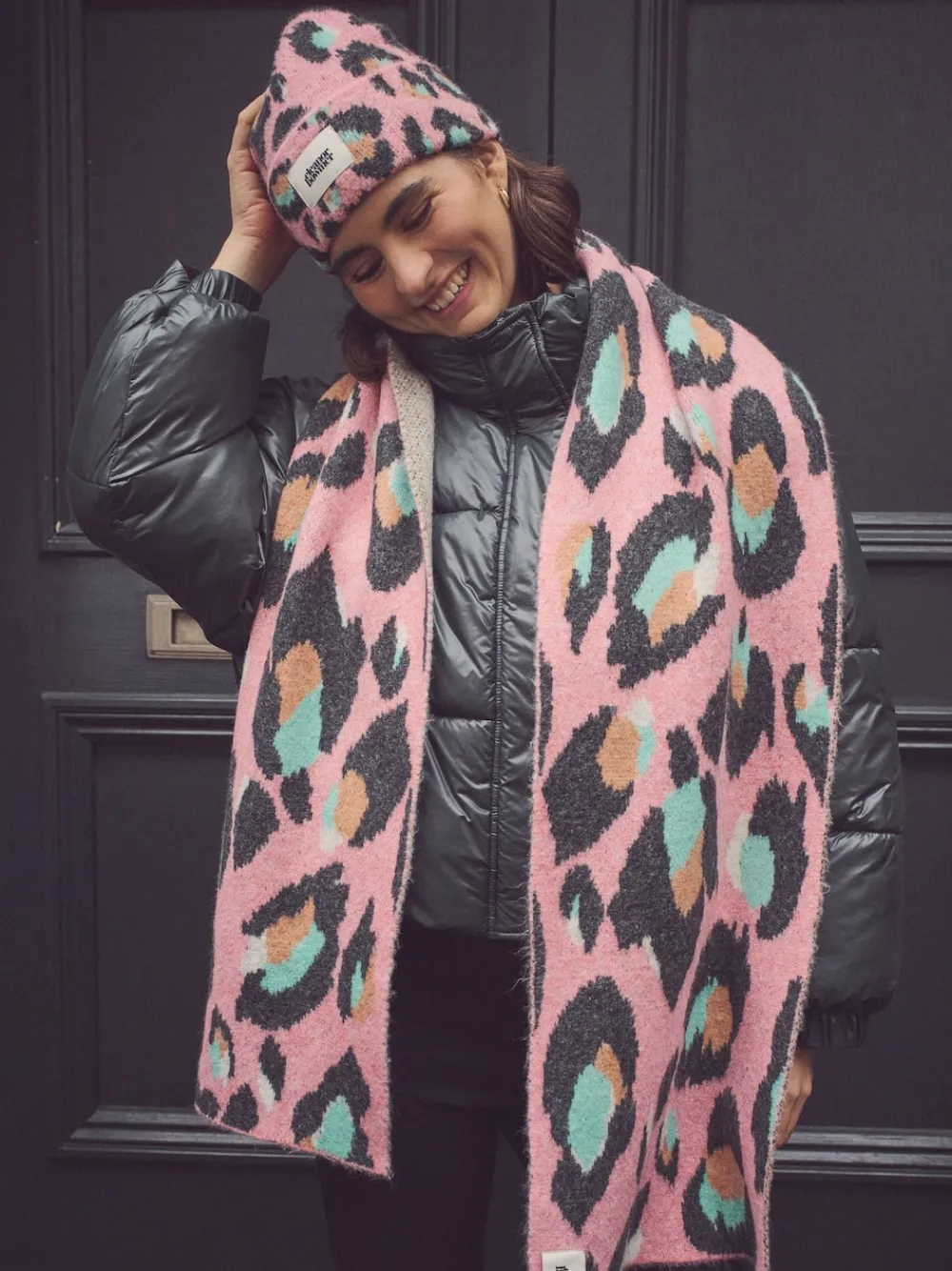 Exclusive to Next. Add a wild touch to your winter fits with this pink leopard print Eleanor Bowmer x NEXT chunky scarf. In a soft wool blend, this chunky knit scarf is ultra cosy and the perfect accent piece to complete your look. Featuring her iconic leopard print design, it’s finely finished with fun tassle ends and a branded label tab. Why not pair with the matching hat for a complete set. Chunky scarf Leopard print Eleanor Bowmer x NEXT collection Tassle ends Machine washable. 66% Acrylic, 13% Recycled polyester, 12% Nylon, 6% Wool, 3% Elastane.