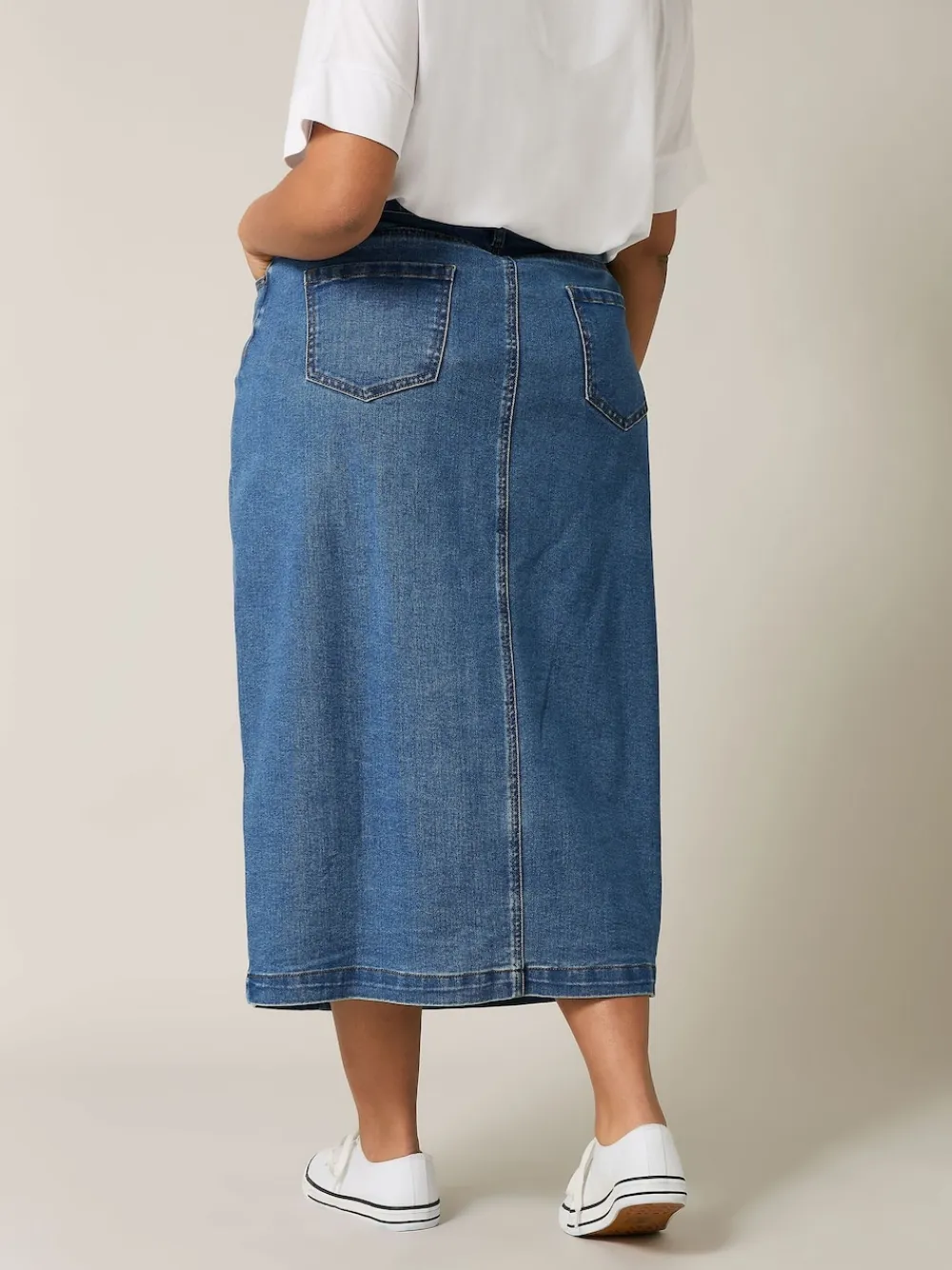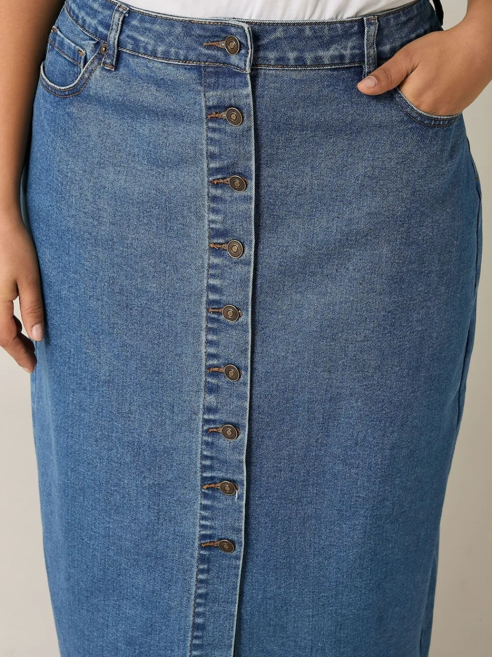 Fit Fashion Notes: The denim skirt that goes with everything. Crafted from a blend of cotton, polyester, and elastane, this skirt is soft, breathable, and provides the perfect amount of stretch. It features button through fastenings, a maxi length, belt loops, and five functioning pockets. Simply pair with a t-shirt and trainers for an everyday look youll never tire of wearing. Why We Love It: A new season staple. Features: Button through fastenings Maxi length Belt loops Five pockets Made from a comfortable denim fabric 73 cotton, 26 polyester, 1 elastane Length from approx: 88cm/34.6 Machine washable Model is 5ft 8”/173cm and size UK 18/EU 46. Machine washable. 73% Cotton, 26% Polyester, 1% Elastane.