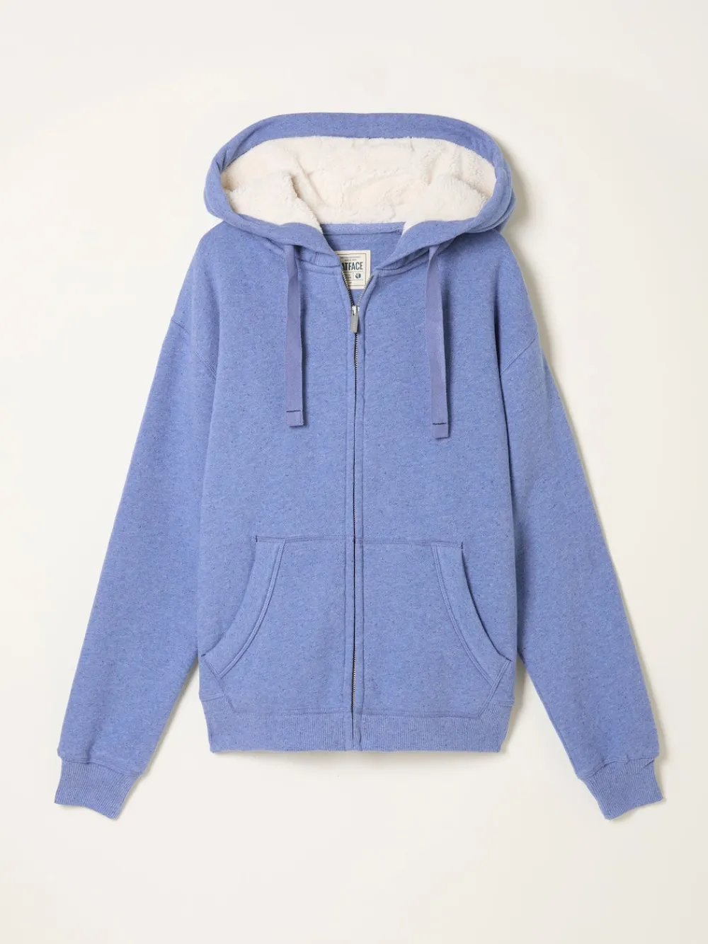 Fat Face FatFace Amy Borg Lined Zip Through Hoodie Pale Blue Best