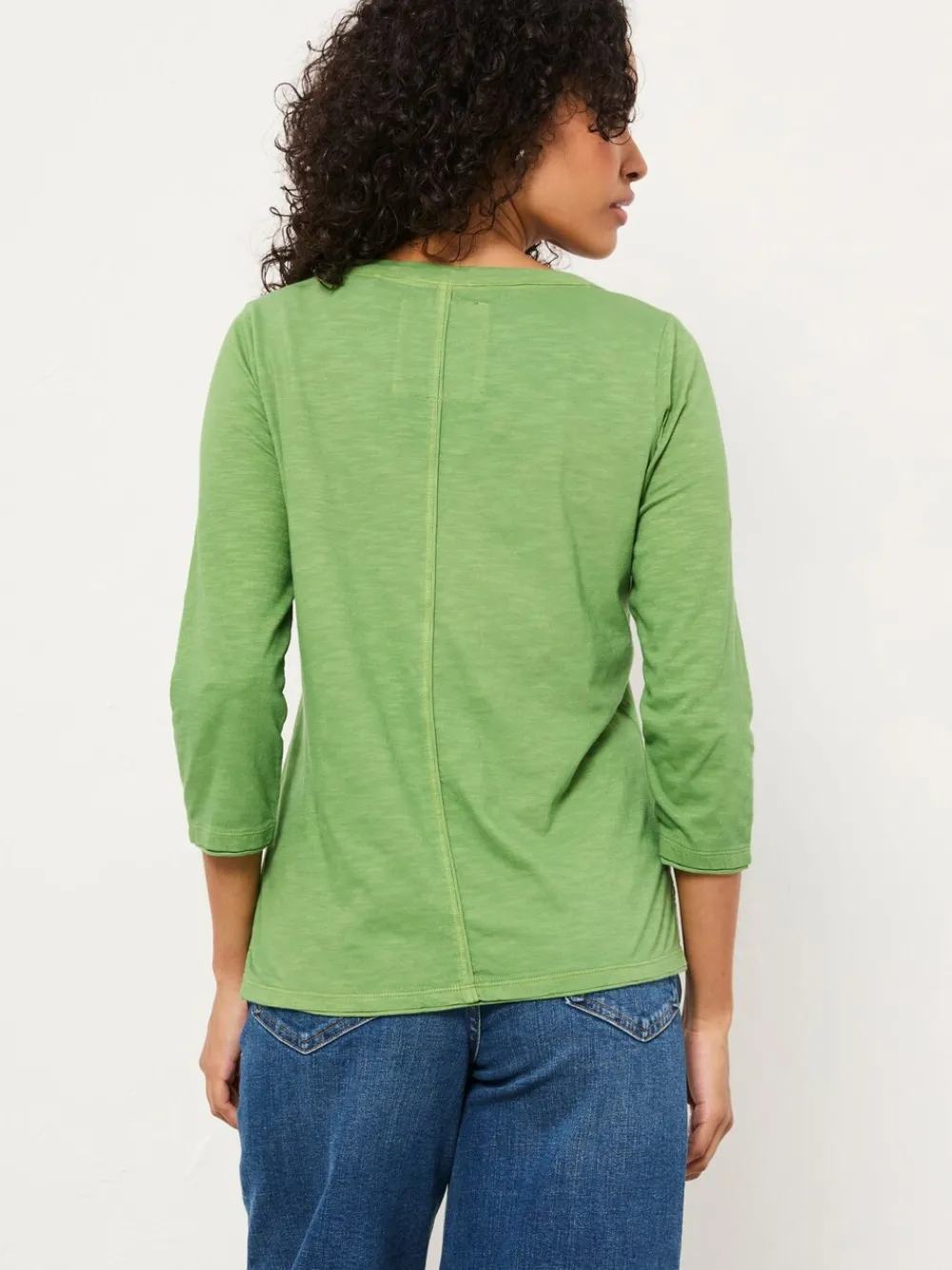 Fat Face FatFace Aster Green 3/4 Sleeve V-neck T Shirt Hot