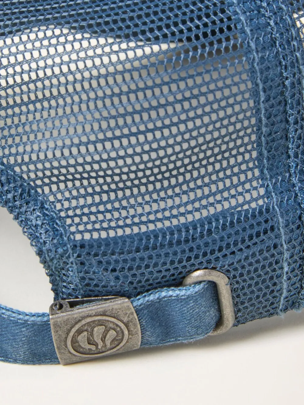 This classic trucker cap is finished with an embroidered sun motif for a playful twist on a timeless shape. With breathable mesh panels, a curved peak, and an adjustable back, it’s made for laid-back days, weekend adventures, and keeping cool when the sun’s out. Hand wash only. Body 100% Cotton. Mesh 100% Recycled polyester.