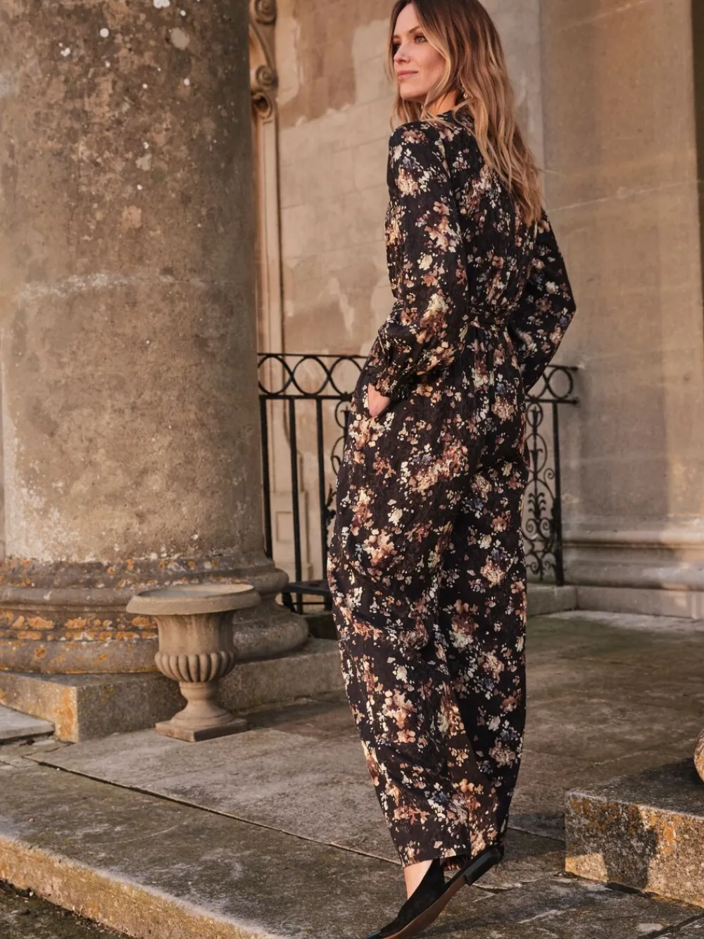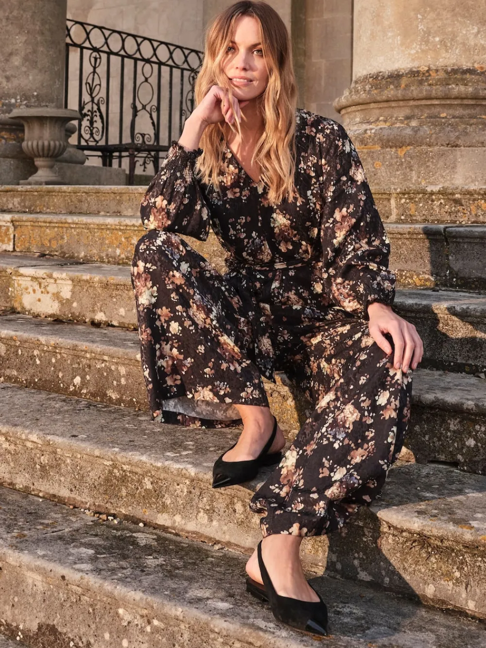 Our Fionn jumpsuit features a flattering V-neckline, tie waist detailing, and long sleeves for a polished yet easy fit. With wide, flowy legs that move beautifully, it’s perfect for dressing up with heels or keeping casual with trainers. A versatile piece made for everything from weekday plans to weekend evenings. Regular inside leg length 26.5″ / 67cm. Machine washable. Shell 50% LENZING™ ECOVERO™ Viscose, 50% Viscose. Lining 100% LENZING™ ECOVERO™ Viscose.