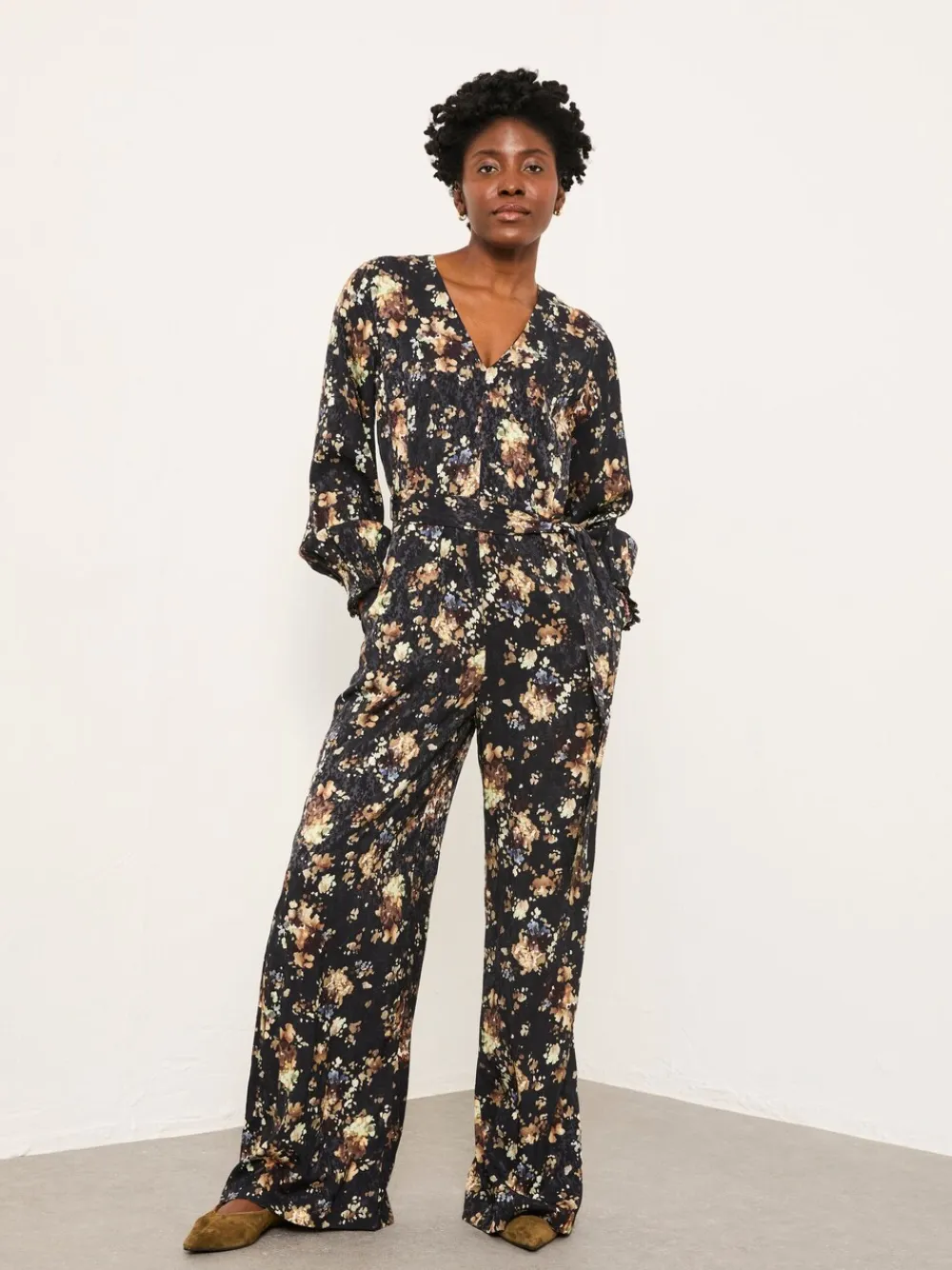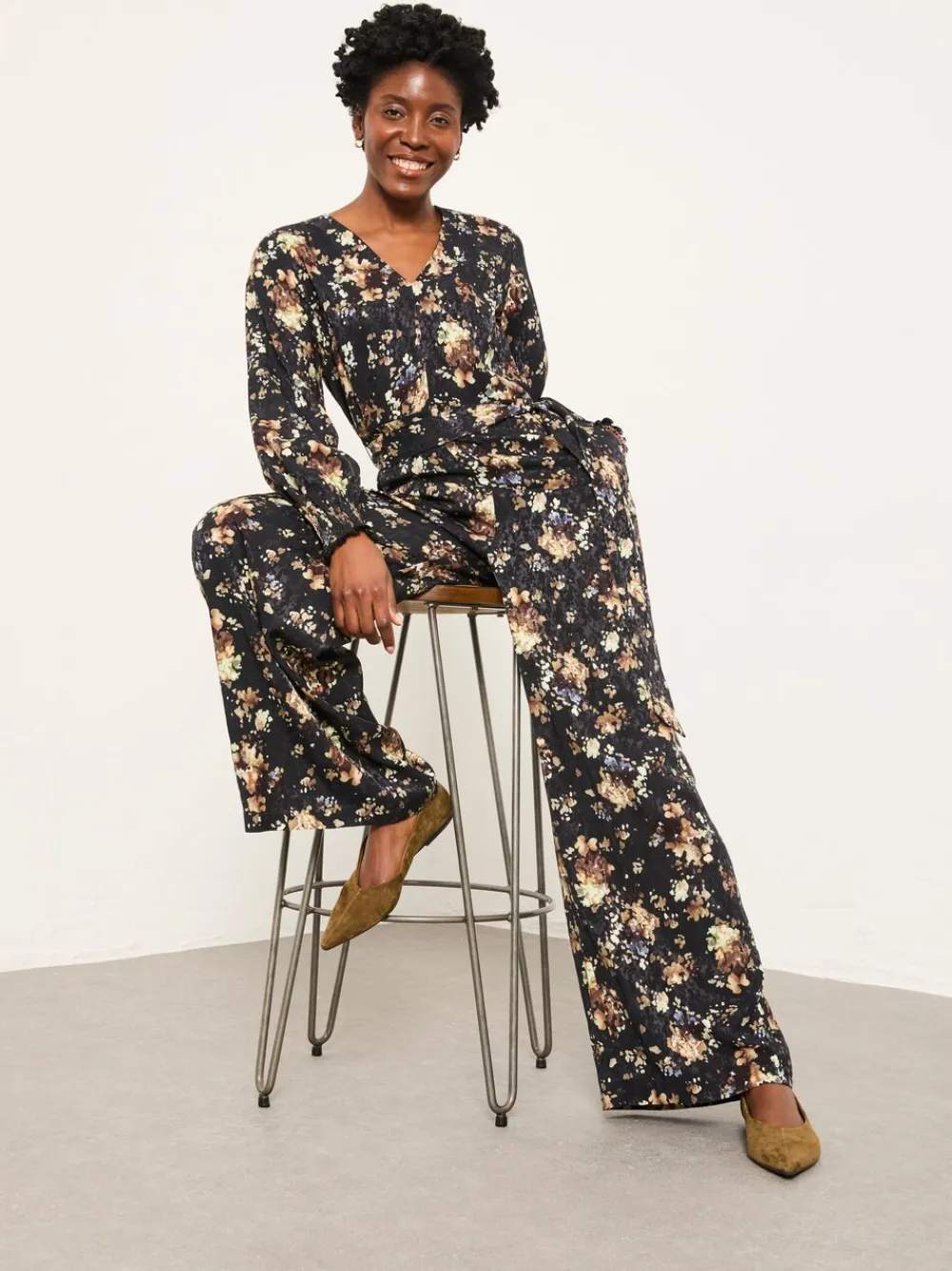 Our Fionn jumpsuit features a flattering V-neckline, tie waist detailing, and long sleeves for a polished yet easy fit. With wide, flowy legs that move beautifully, it’s perfect for dressing up with heels or keeping casual with trainers. A versatile piece made for everything from weekday plans to weekend evenings. Petite inside leg length 23″ / 58cm. Machine washable. Shell 50% LENZING™ ECOVERO™ Viscose, 50% Viscose. Embroidery 100% LENZING™ ECOVERO™ Viscose.