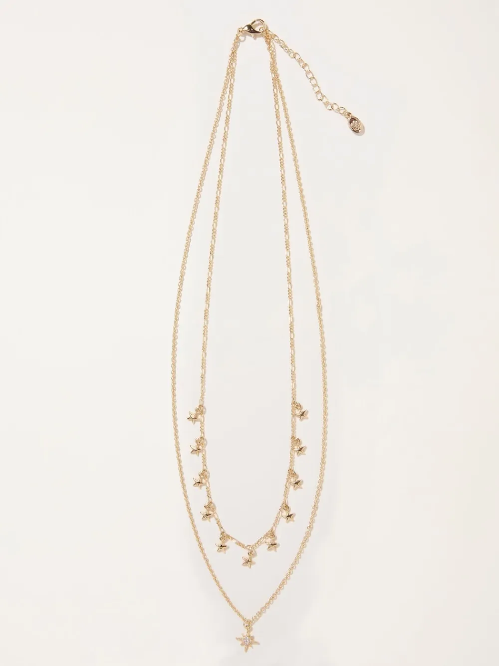 Add a touch of elegance to any outfit. With its stunning design, this star layered gold toned necklace is the perfect accessory to elevate your style, whether dressed up or down. 80% Brass, 20% Zinc.