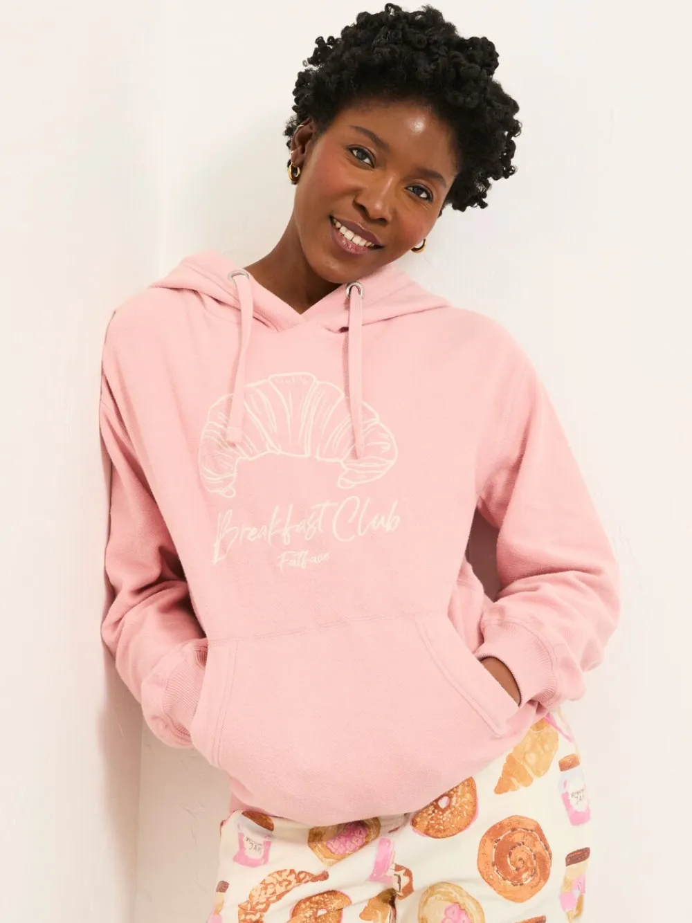 Fat Face FatFace Imogen Pink Breakfast In Bed Graphic Overhead Hoodie