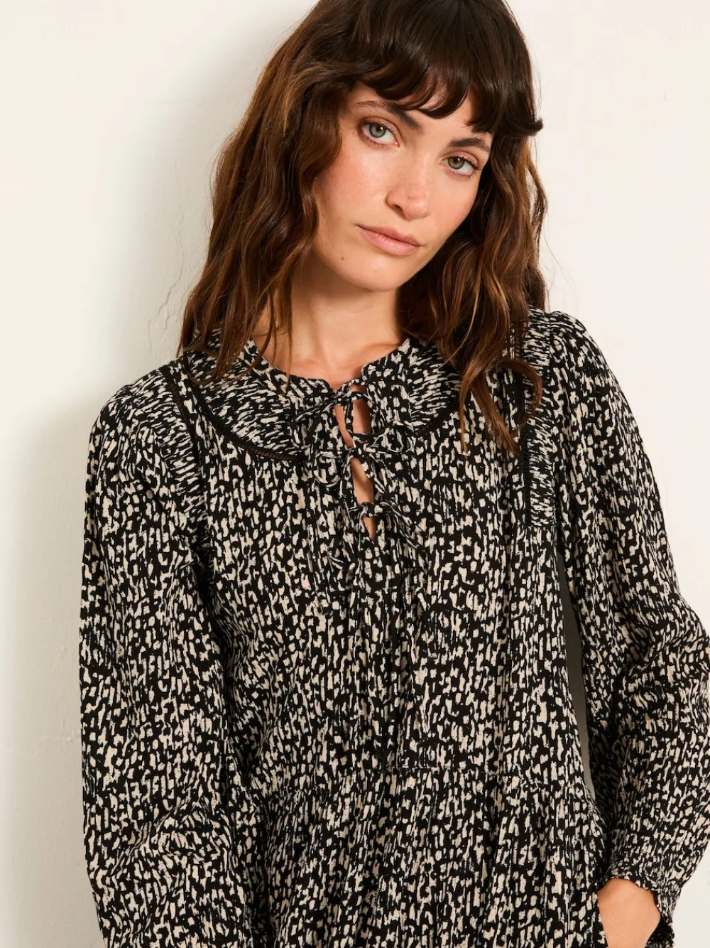 The Inez dress is light, floaty, and made to move. With a soft floral print, gathered sleeves, and a relaxed silhouette, it’s an easy piece for warm-weather days and laid-back plans. Finished with a flattering V-neckline and above-the-knee length, it’s one to wear on repeat. Pairs perfectly with your favourite jacket and boots. Regular side neck to hem 36.5″ / 93cm. Machine washable. Main 100% LENZING™ ECOVERO™ Viscose. Lace 100% Cotton.
