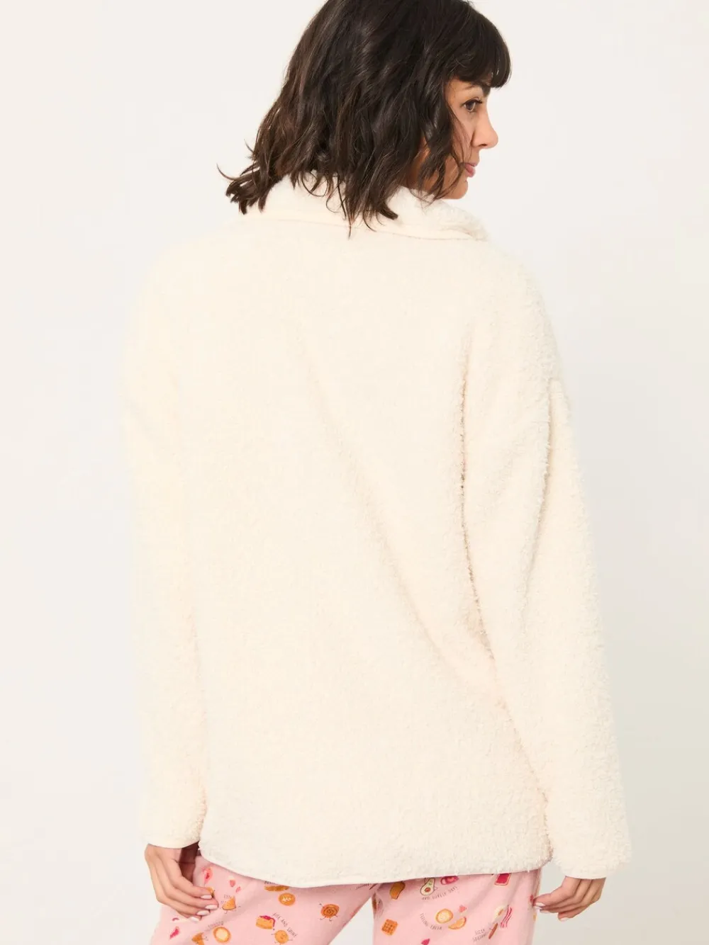 Crafted from ultra-soft, fluffy recycled polyester, our Borg Snuggle Zip Through Top will have you wishing for bedtime. The cosy collar and relaxed fit are perfect for keeping you snug during the colder months, while the longline fit offers all the coverage you need when all you want to do is snuggle up. Machine washable. 100% Recycled polyester.