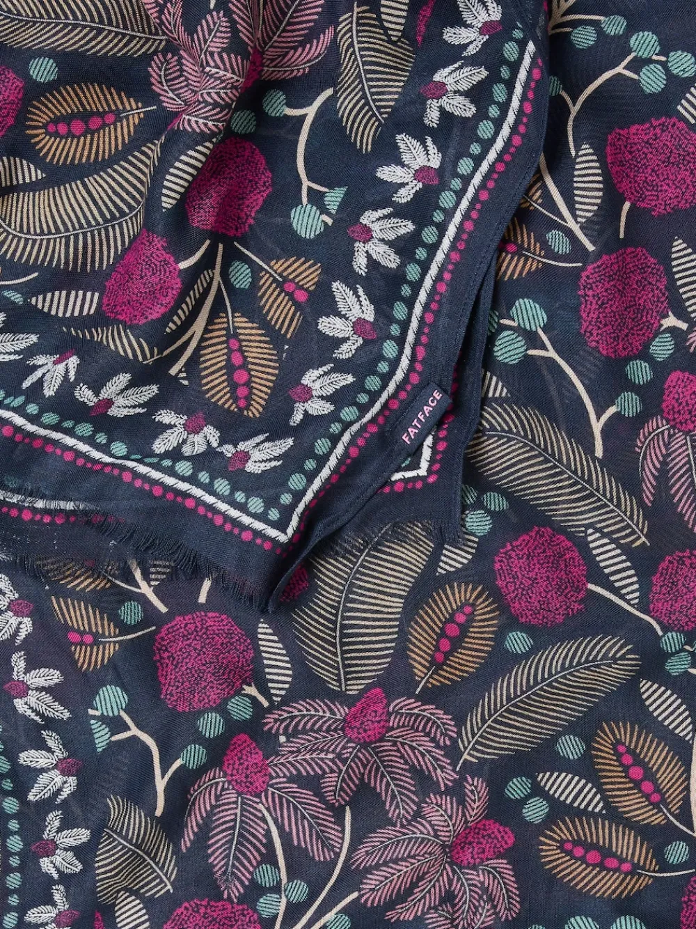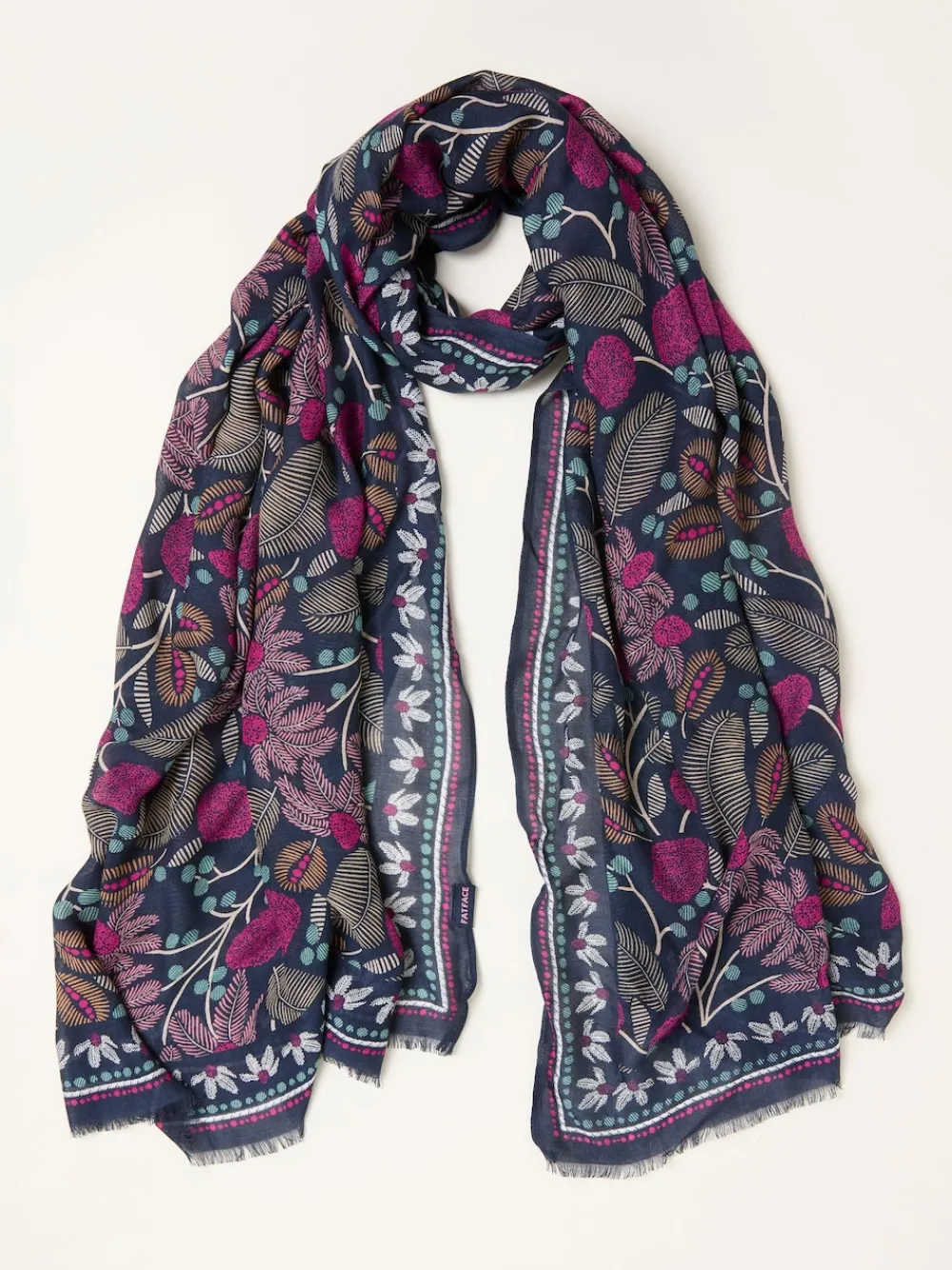 Fat Face FatFace Navy Blue Leaf Floral Printed Lightweight Scarf Online