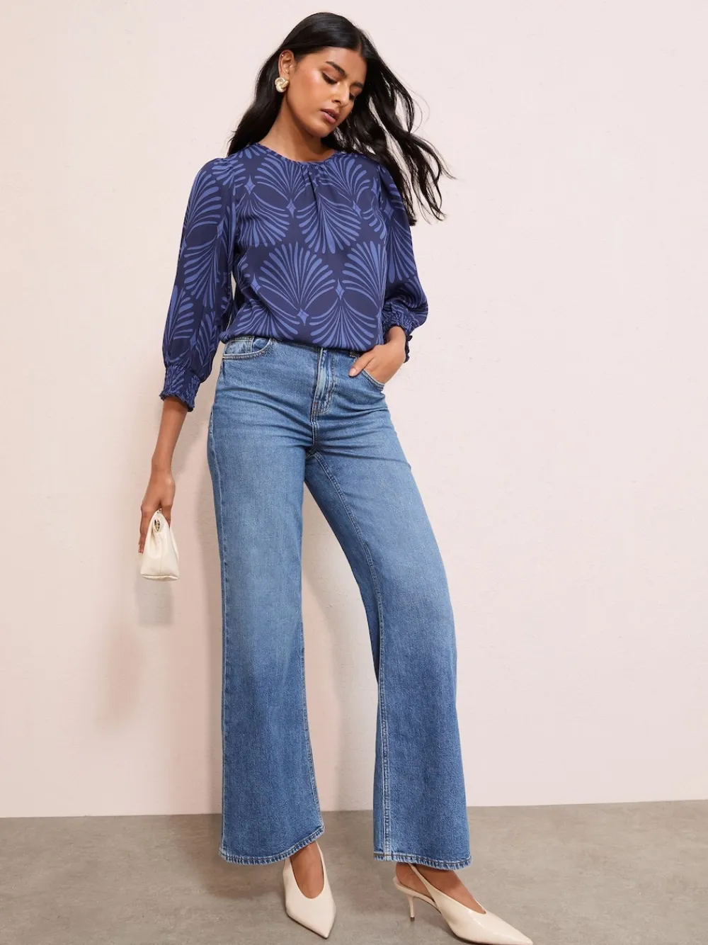 A gorgeous 3/4 sleeve blouse with shirred cuffs. This is the perfect blouse to add to your wardrobe for those desk-to-dinner outfits. Pair with your favourite denim jeans for a chic weekend outfit or create a smart workwear look with a tailored trouser. Featuring: Shirred cuffs 3/4 sleeve Button fastening at the back neck Model is wearing a size 8 UK. 100% Polyester.