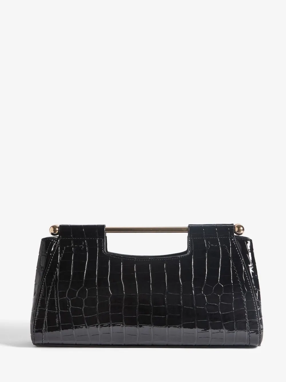 Friends Like These Black Croc Effect Grab Handle Clutch Bag