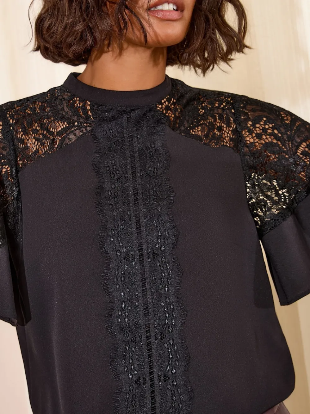 Be the first to review “Friends Like These Black Lace Flutter Sleeve Blouse New” Cancel reply