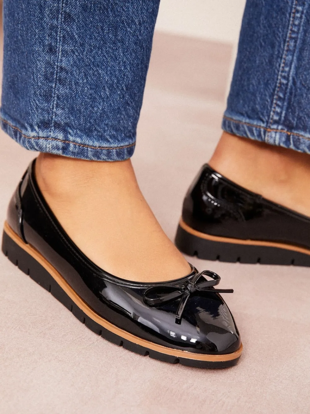 Elevate your day-to-day style with our chic ballerinas. The updated low wedge and contrast detailing give this classic silhouette a modern twist. Featuring: Low wedge design Contrast detailing Slip on Faux Leather Bow detail Upper – Other Materials, Lining & Sock – Other Materials, Textile, Sole – Other Materials.