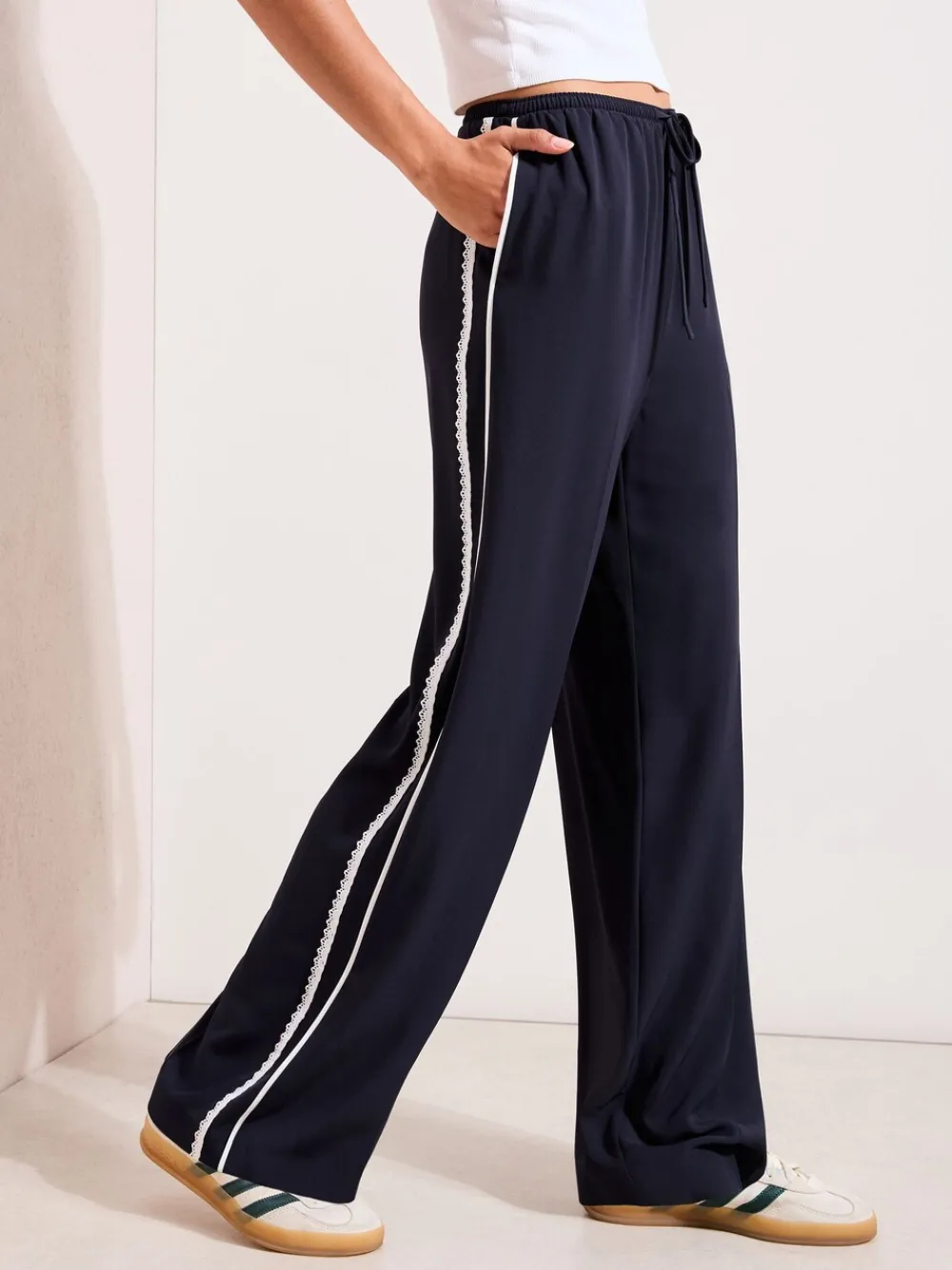 Be the first to review “Friends Like These Crochet Trim Wide Leg Trousers Navy New” Cancel reply