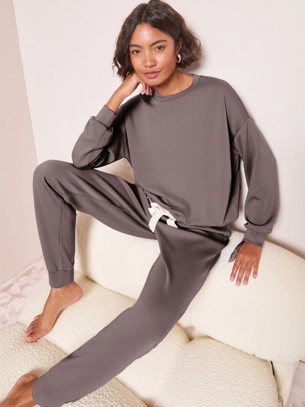 Our Premium Jogging bottoms feature a soft, premium fabric making the set a wardrobe staple. Perfect for a dreamy night’s sleep or lounging in style. Model wears UK size S. 49% Viscose, 44% Polyester, 7% Elastane.