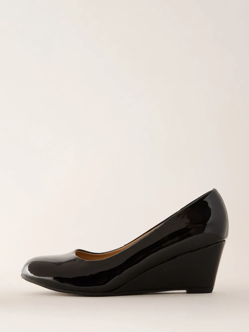Our easy to wear mid wedge court shoes is the perfect staple for your workwear wardrobe. Available in a soft faux suede or a stylish faux leather patent material. Featuring: Comfortable mid wedge height. Easy slip on design. Round toe. Patent faux leather. Upper – Other Materials, Lining & Sock – Other Materials, Textile, Sole – Other Materials.