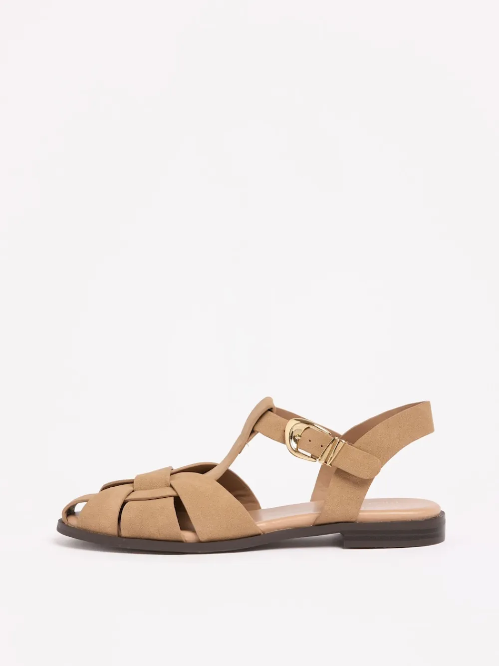 These chic sandals combine a classic design with a modern touch. Featuring a woven faux suede strap across the foot, they offer a stylish take on the fisherman sandal trend. – Faux suede material- Closed toe fisherman design – Gold hardware details – Comfortable footbed Upper – Other Materials, Lining & Sock – Other Materials, Sole – Other Materials.