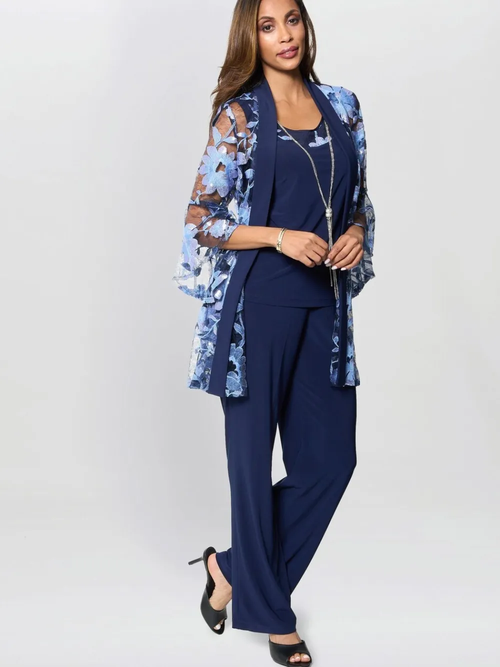 Gina Bacconi Blue Dorris Trousers Suits 3 Piece With Embroidered Jacket Best