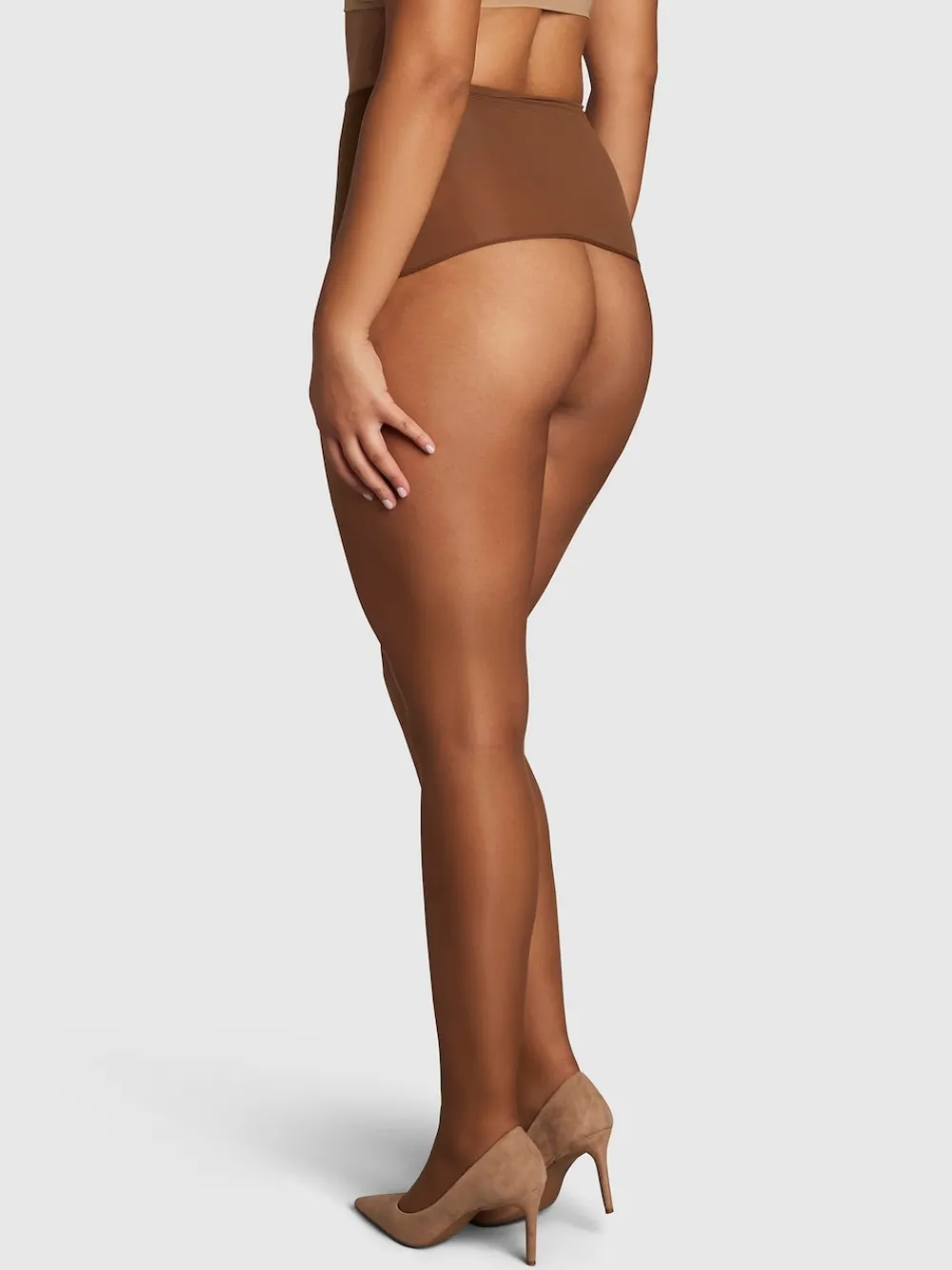 Seamless nude tights in ultra-comfortable 18 deniers, with a representative shade to suit anyone. Flawless, natural, invisible. With our gravity-defying, seamless tight design and adaptive waistband, digging, sagging and rolling are history. Year-round comfort that offers flawless security when you’d prefer not to go bare. No gusset means no sagging. Our waistband doesn’t dig or roll, it hugs. Our durable yarn is better for you and our planet. *Sizes UK 16 and above have a reinforced area underneath the waistband to improve durability. Ideally, we recommend hand washing. Realistically, machine wash with care (cold 30 C and gentle) with similar colours. Please line dry. Do not bleach, tumble dry, iron or dry clean. Our tights are designed to last but like any garments made from delicate fabrics, they do ask that you treat them with tender loving care. Body and waistband: luxurious double-covered yarn, 64% Polyamide, 36% Elastane. Adaptive waistband is hand-sewn using light cotton thread. Machine washable. 66% Nylon, 34% Lycra® dualFX® elastomultiester.