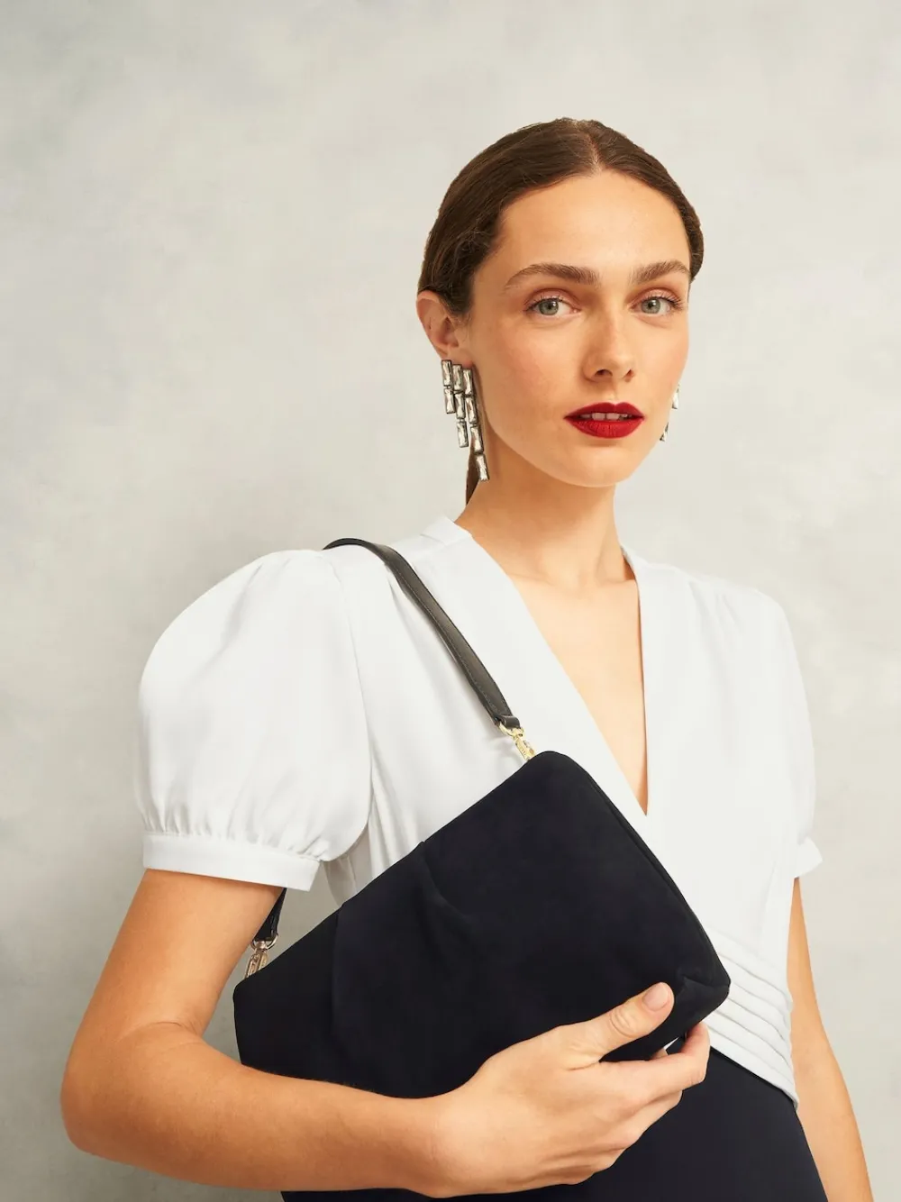 To be styled in hand or over the shoulder, the suede Clifton clutch serves an understatedly chic finish to myriad occasions. Soft suede. Pleat detail. Detachable strap with chain detail. Magnetic closure. Dust bag for protection while storing. Height:15cm/5.91 inches, Width: 25cm/9.84 inches, Depth: 7cm/2.7 inches. Main 100% Suede. Lining 100% Polyester.