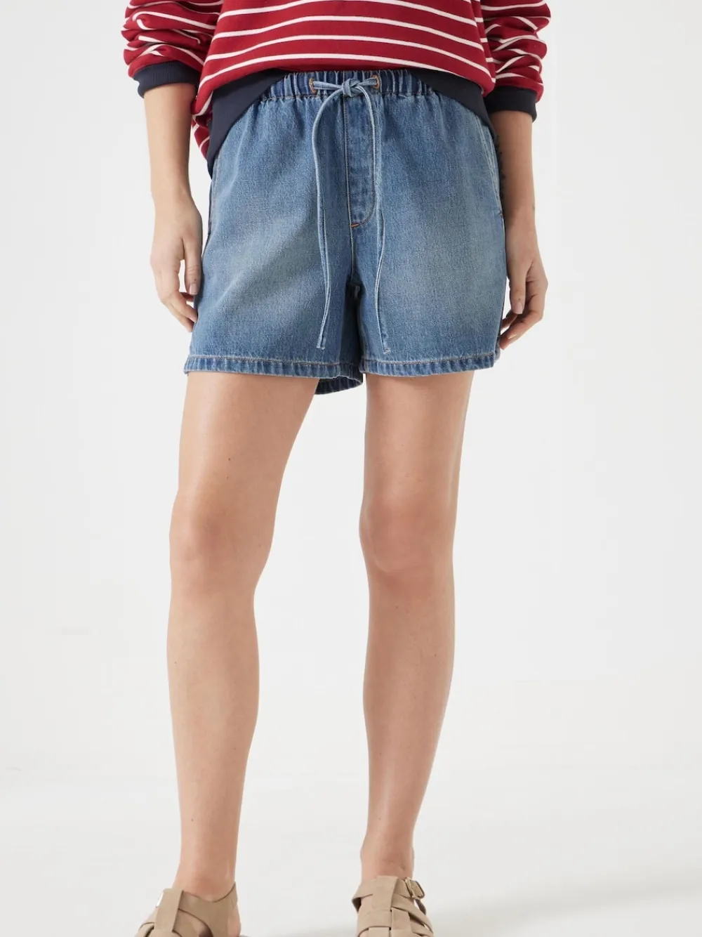 The warmer months are all about taking it easy, right? That’s why we designed our Betty shorts in lightweight denim with an elasticated waist, so we can pull them on and forget we’re even wearing them – they’re that comfortable. Style them with lightweight knits now, and bikinis later. Regular inside leg length 4.5″ / 12cm. Machine washable. 74% Cotton, 26% Lyocell.