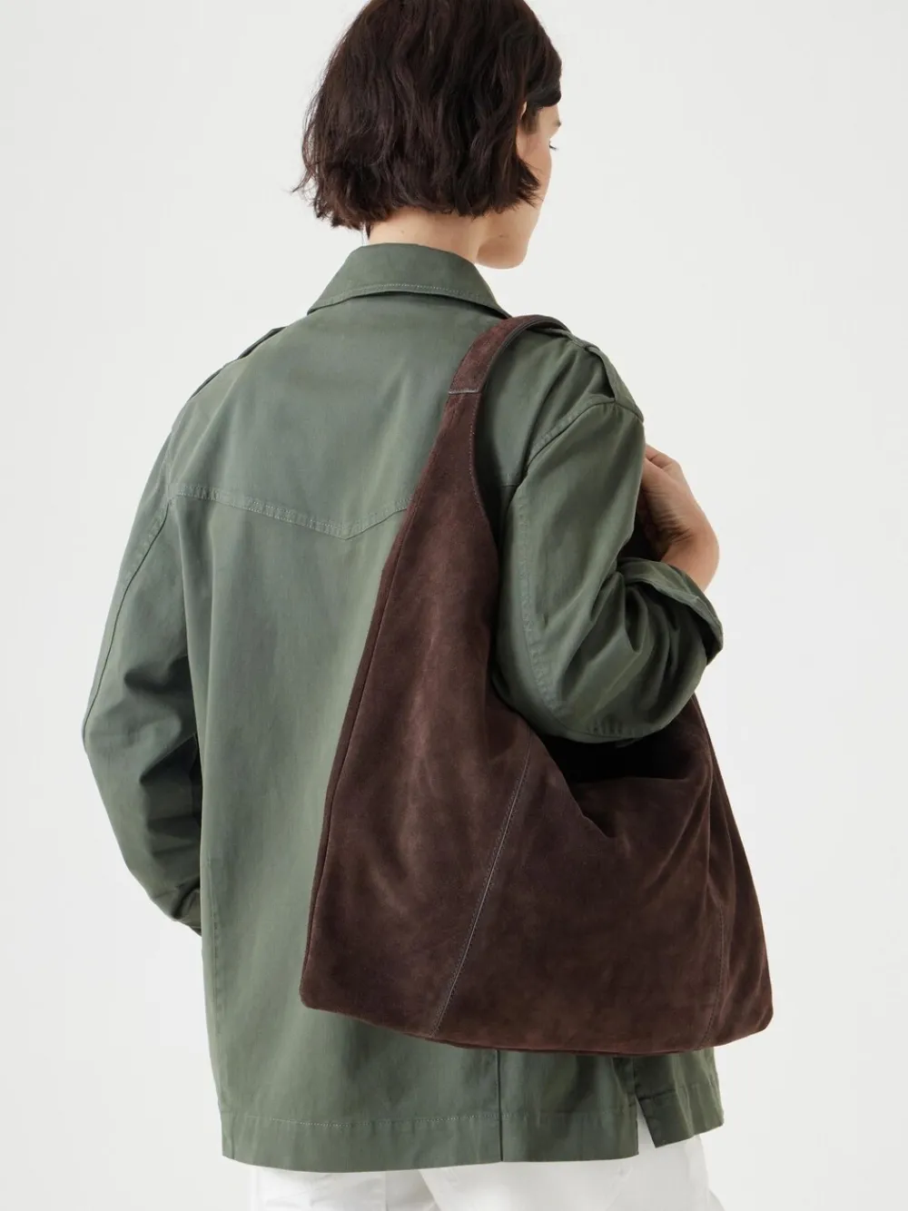 Looking for something chic, understated, and roomy to carry everything this season? Our hobo tote bag offers plenty of space for all your day-to-day essentials, and we’ve seamlessly incorporated the handle into the overall design for a clean silhouette. The best part is the supple suede fabric, which gives it that effortless, slouchy shape. Height 37cm Width 45cm 100% Leather.