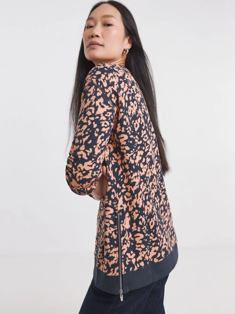 JD Williams Orange Leopard Print Side Zip Longline Sweatshirt New