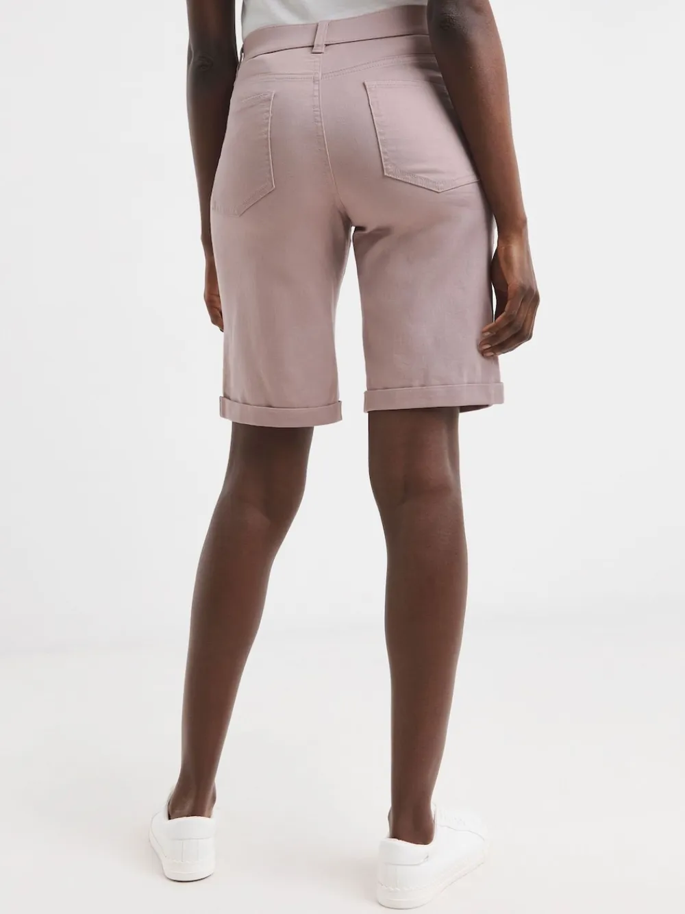 New and improved fit. Our 24/7 knee shorts is the perfect everyday shorts that has been reworked for the season. Now in blush and in our stretch denim fabric, this knee short can be worn casually and comfortably throughout the day and dressed up to take you into the night. Also features hidden back elastication and clever tummy tuck pocketing detail for ultimate comfort and fit. Regular inside leg length 9.5″ / 24cm. Machine washable. 84% Cotton, 14% Viscose, 2% Elastane.