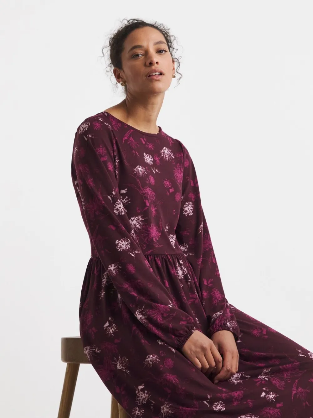 This Soft Touch Printed Smock dress is the perfect Autumn / Winter staple piece! This dress is super easy and comfortable to wear and can be styled with some black boots. Features include a round neckline, elasticated waist to maximise comfort and has been designed in our gorgeous burgundy floral print. This dress falls at our true maxi length 50 inches. Regular side neck to hem 50″ / 127cm. Machine washable. 95% Polyester, 5% Elastane.