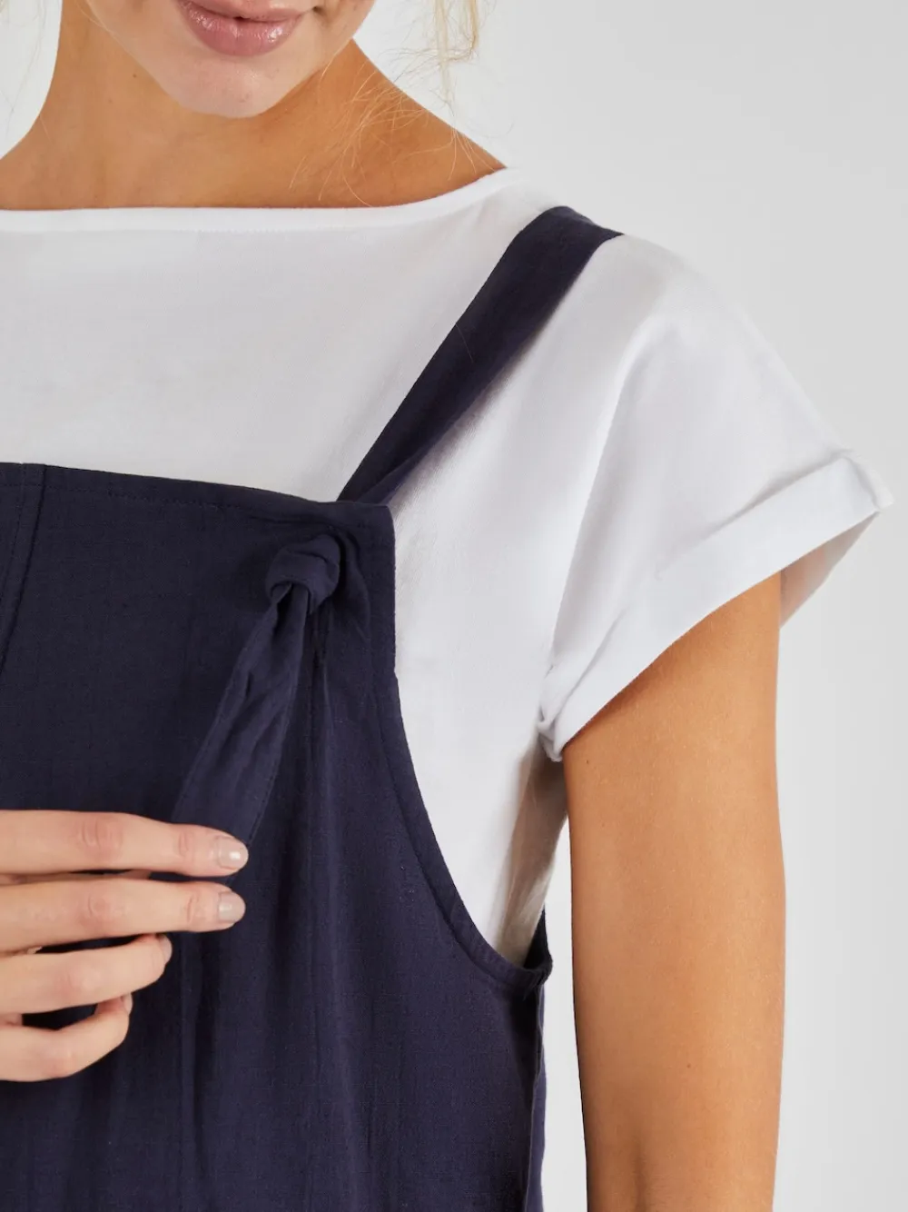 Jojo Maman Bébé Navy Blue Short Maternity Linen Blend Dungarees