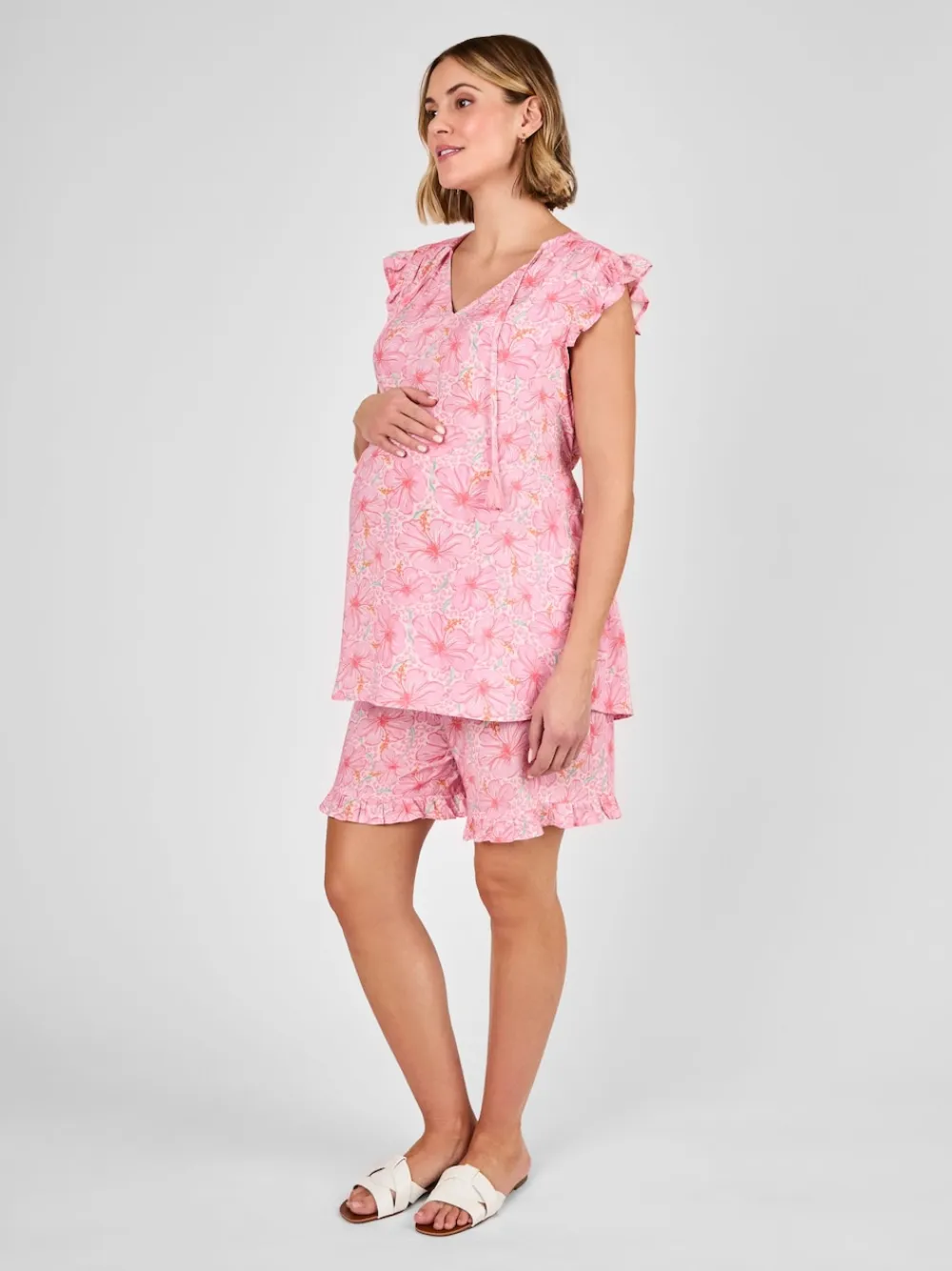 Jojo Maman Bébé Pink Floral Patterned Frill Maternity Shorts